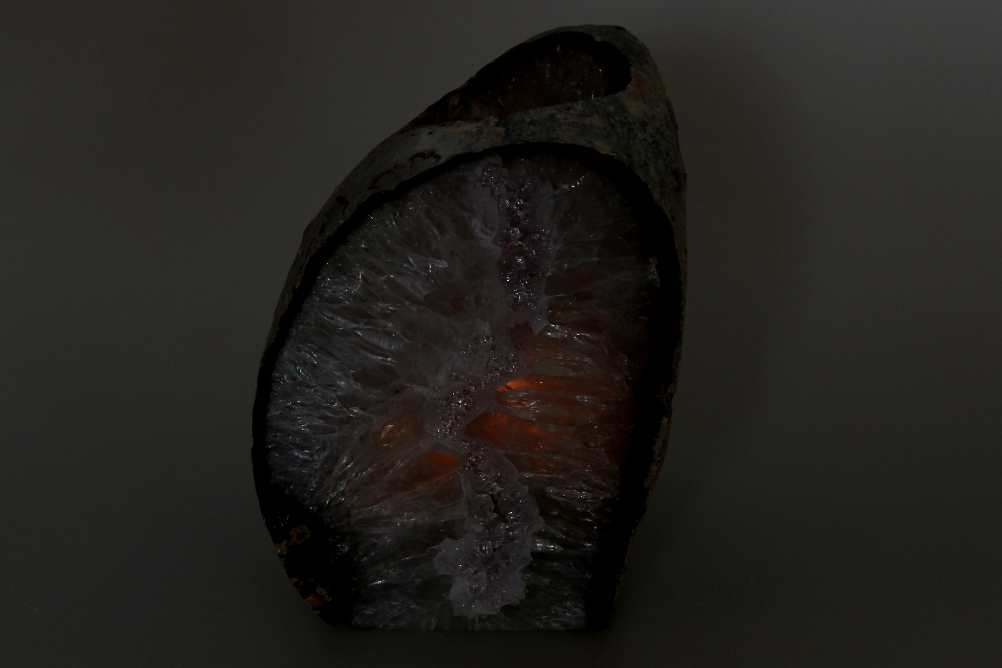 Křišťál geoda s leštěným okrajem.