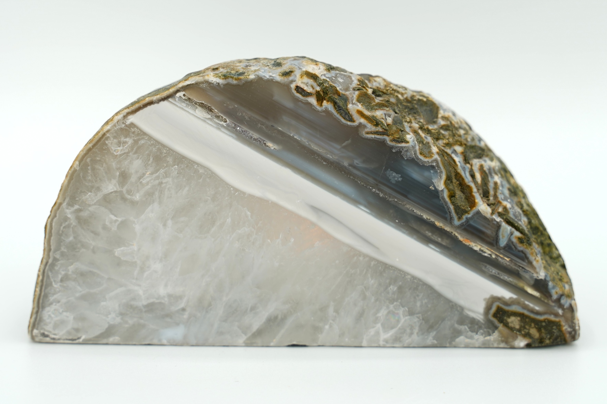Velmi pěkná ametystová geoda se sytě fialovými drobnějšími krystaly a achátovým lemem, uvnitř je…