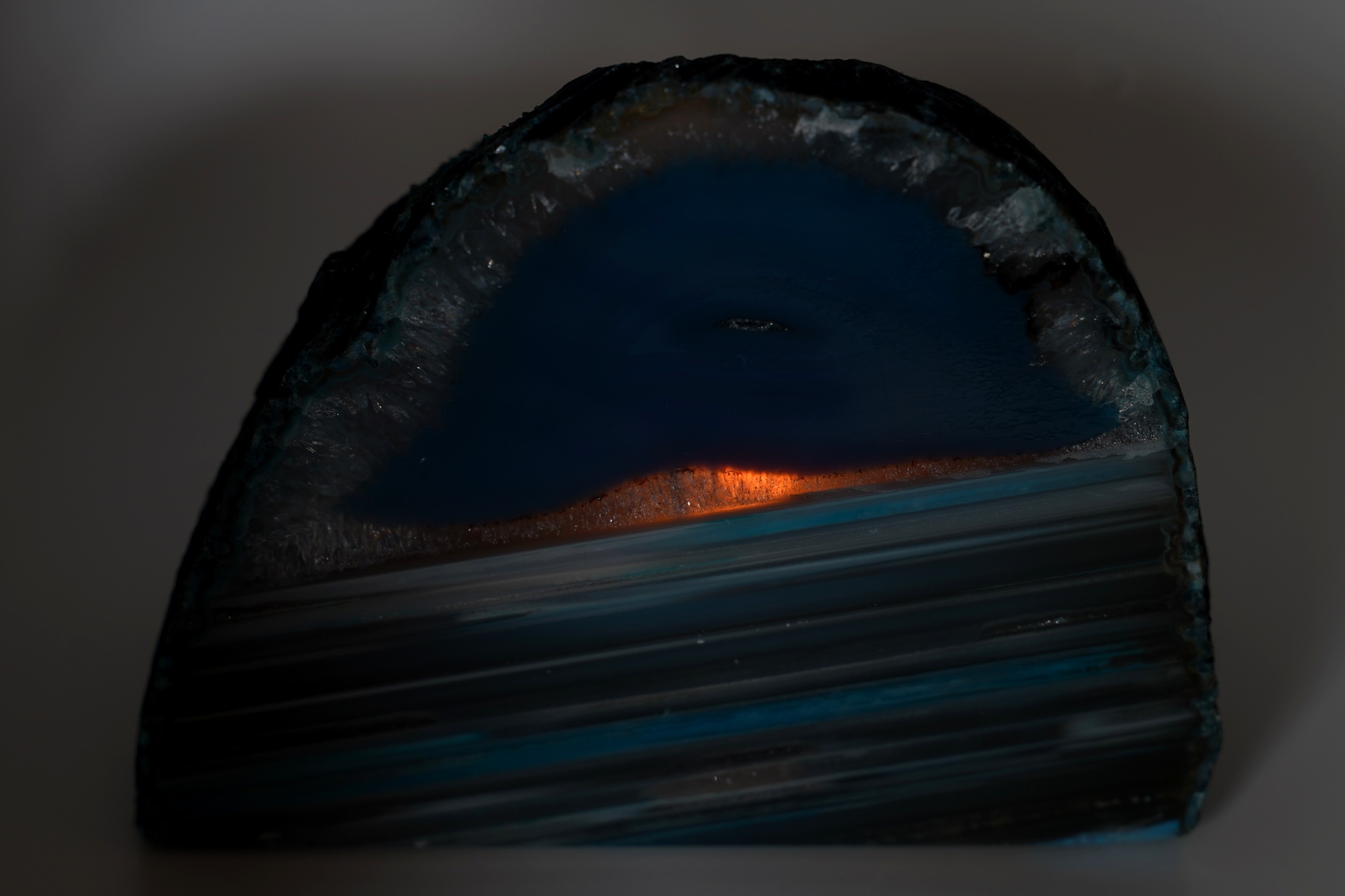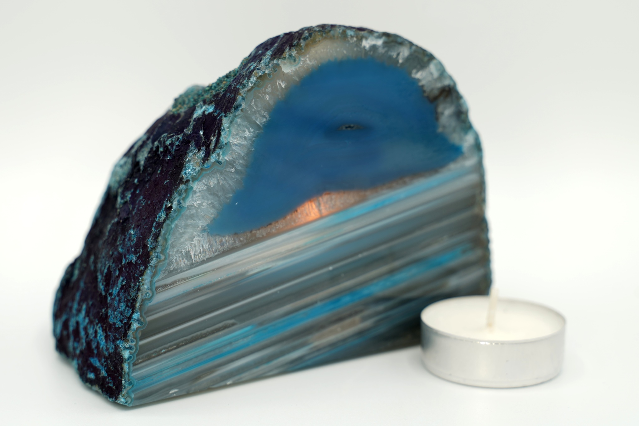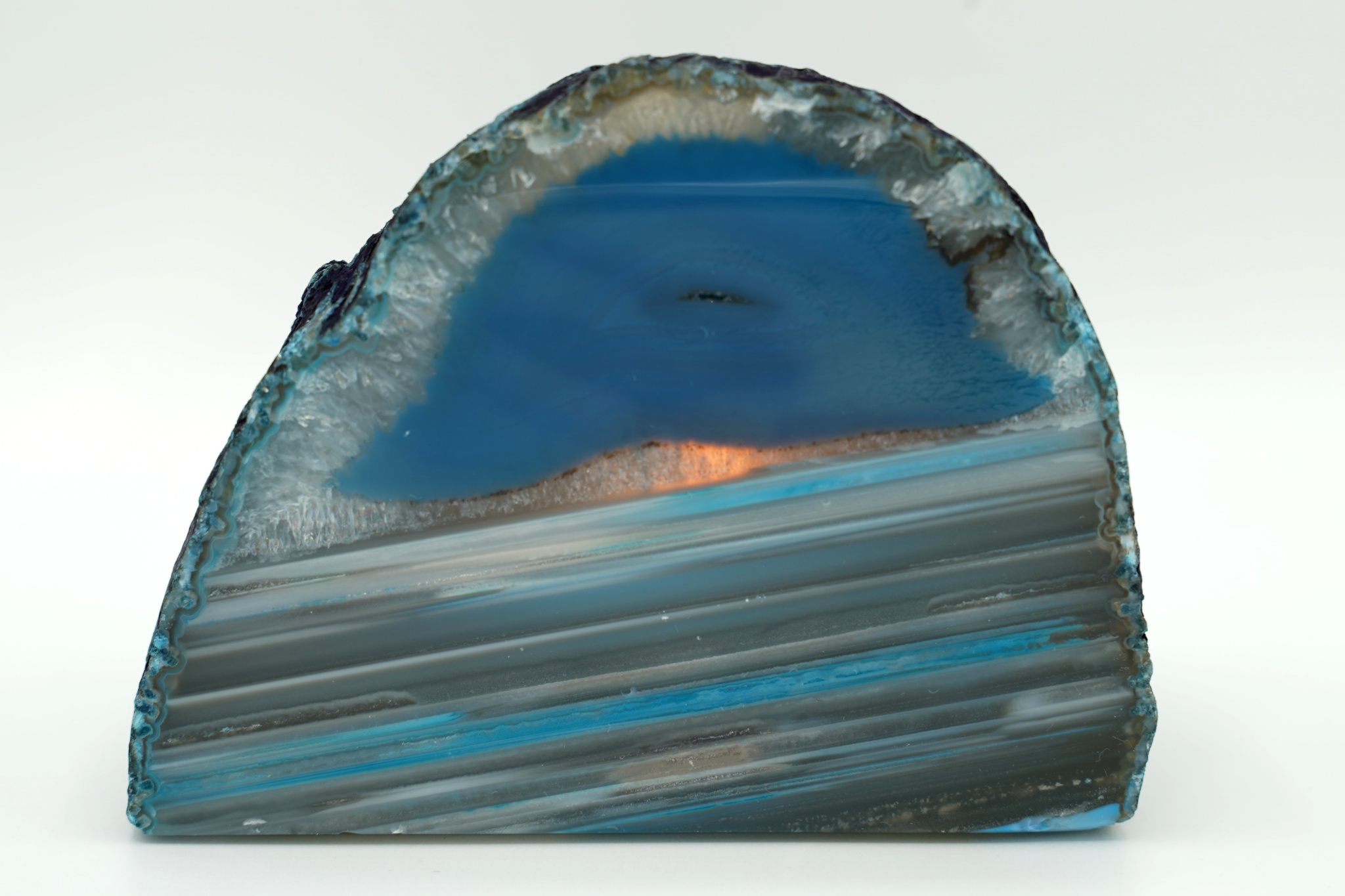 Velmi pěkná ametystová geoda se sytě fialovými drobnějšími krystaly a achátovým lemem, uvnitř je…