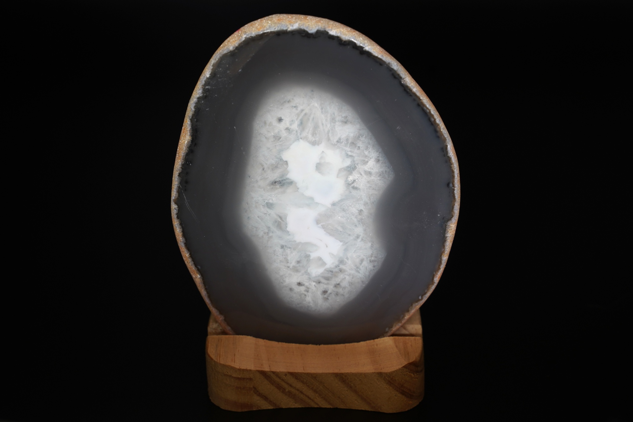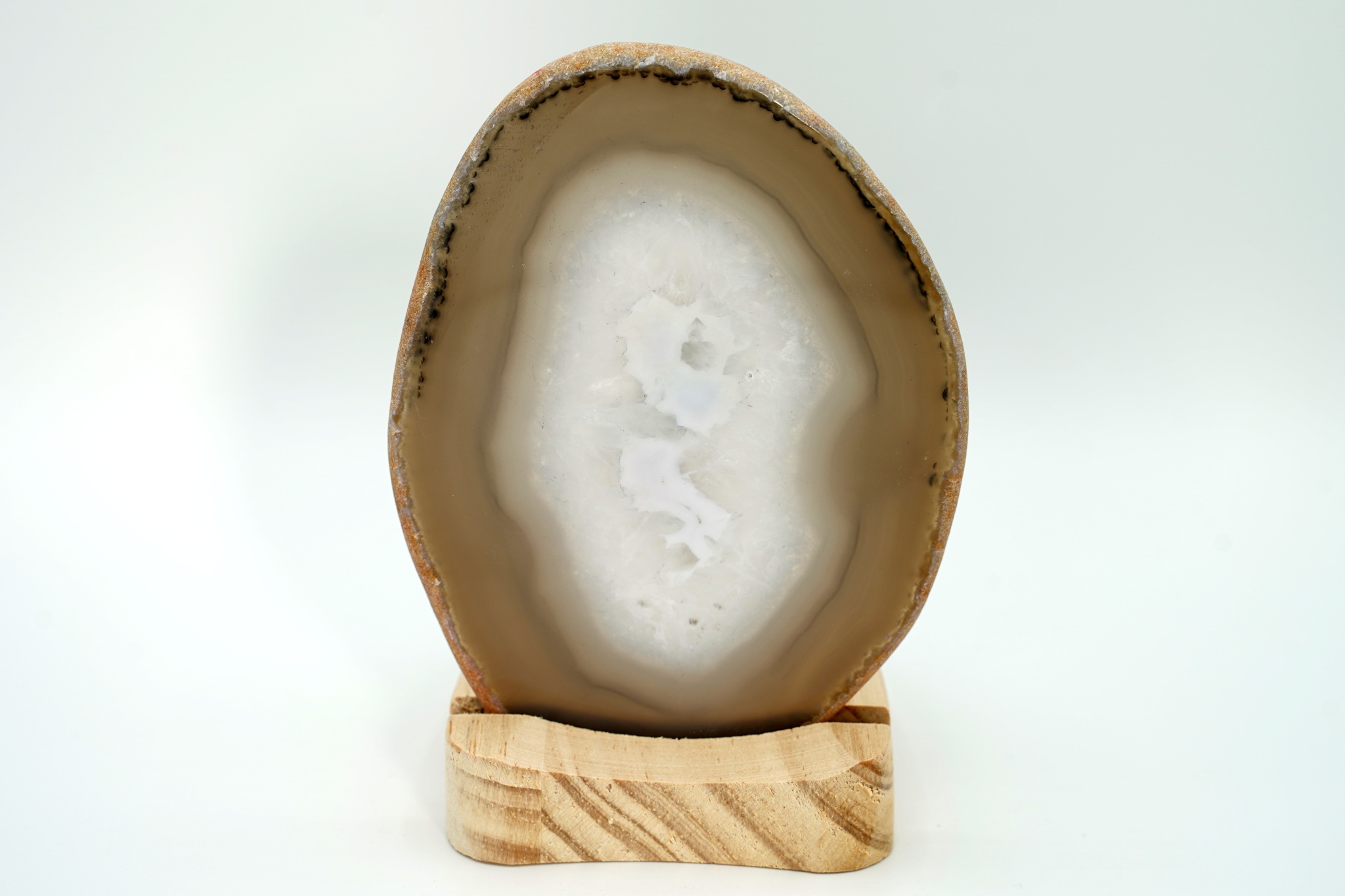 Velmi pěkná ametystová geoda se sytě fialovými drobnějšími krystaly a achátovým lemem, uvnitř je…