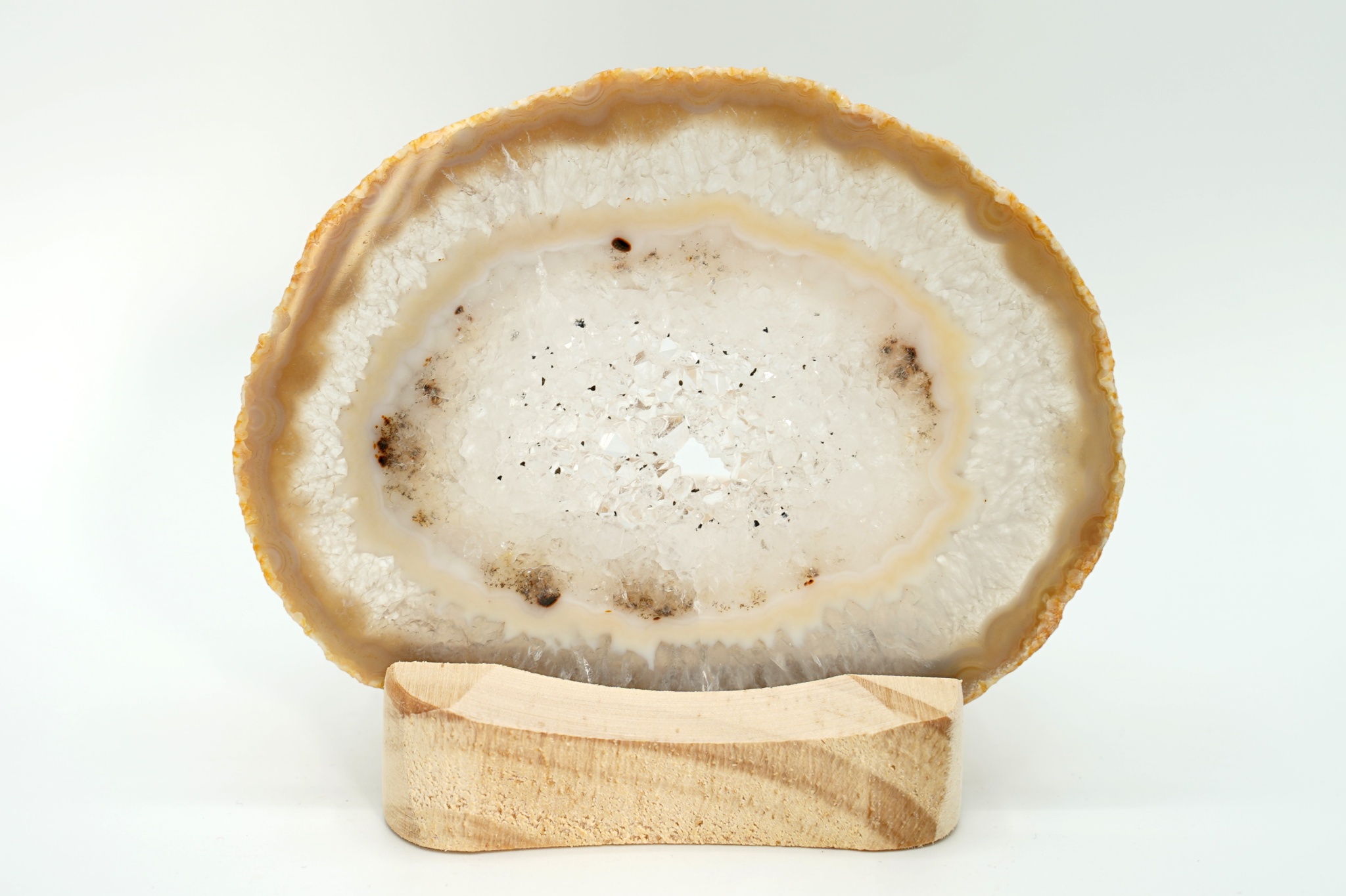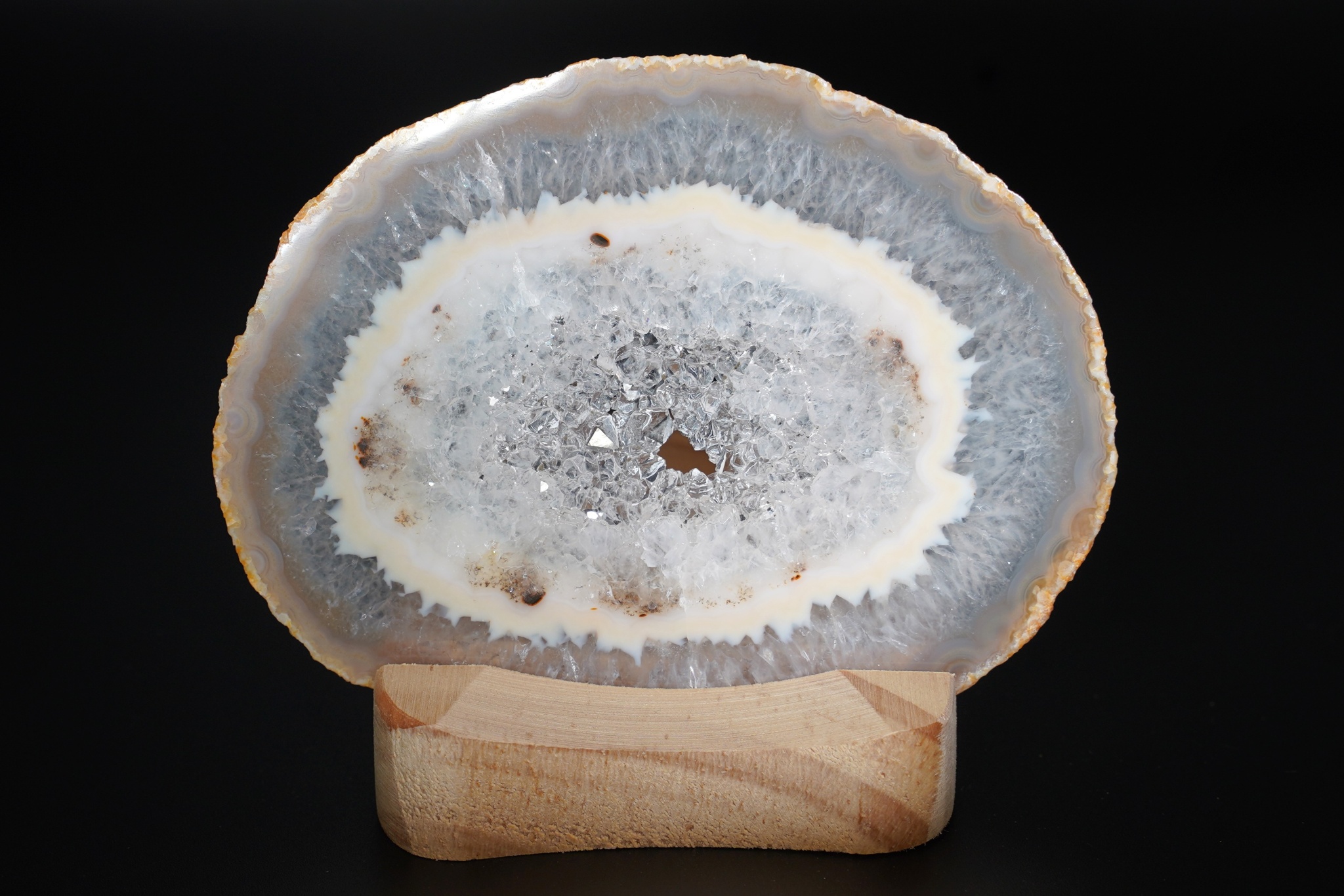 Velmi pěkná ametystová geoda se sytě fialovými drobnějšími krystaly a achátovým lemem, uvnitř je…