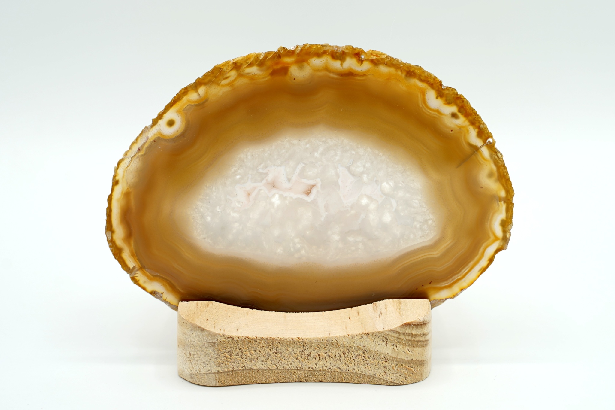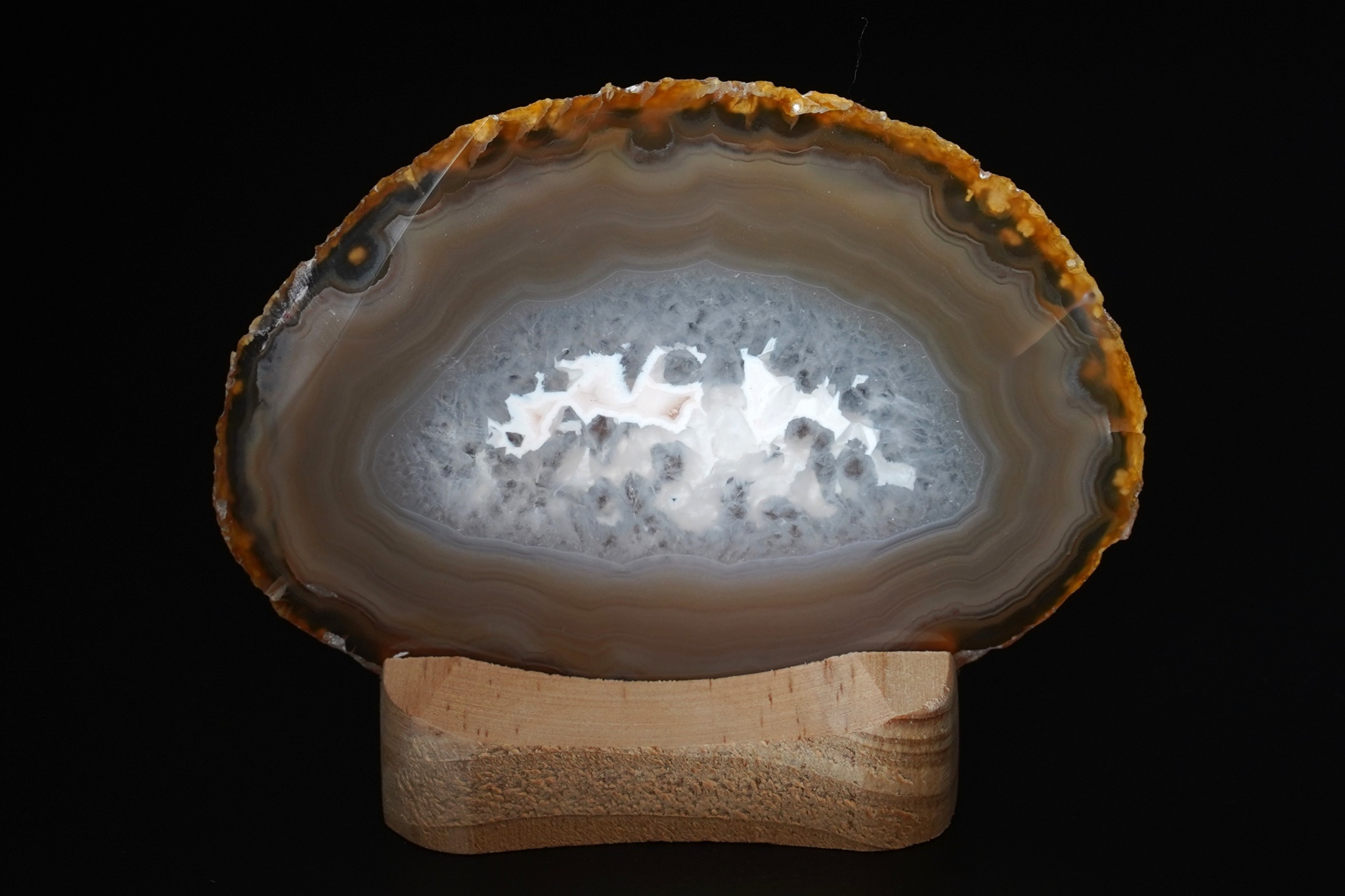 Velmi pěkná ametystová geoda se sytě fialovými drobnějšími krystaly a achátovým lemem, uvnitř je…