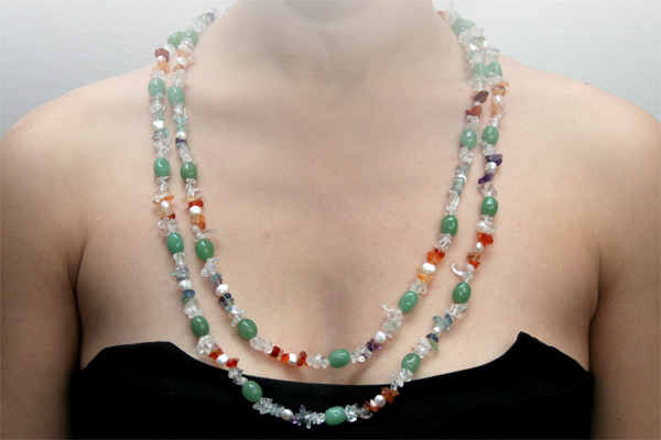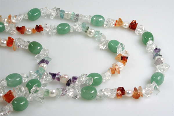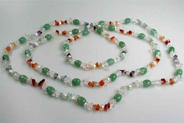 Náramek z valounků křišťálu, citrínu, ametystu a růženínu.