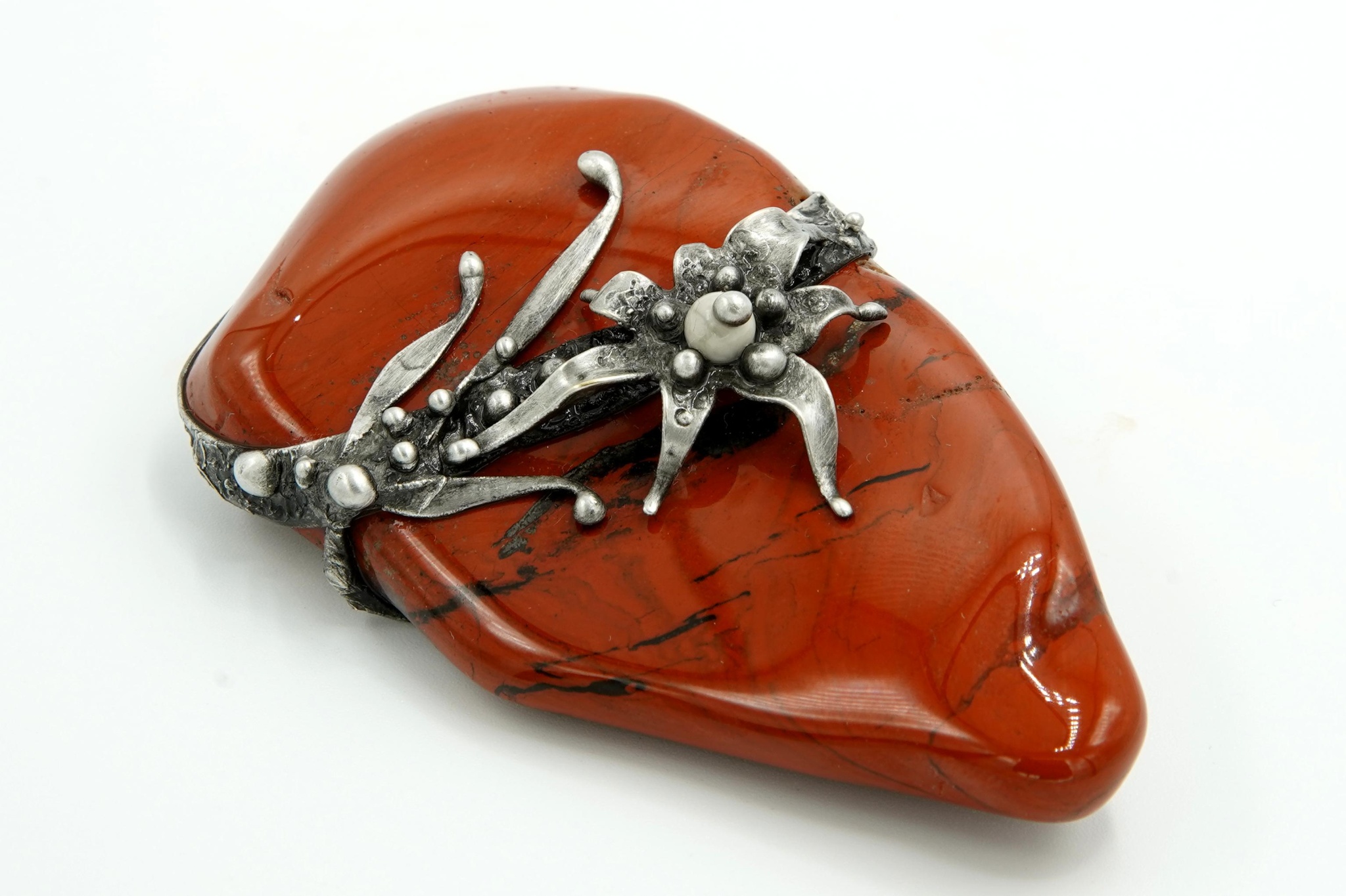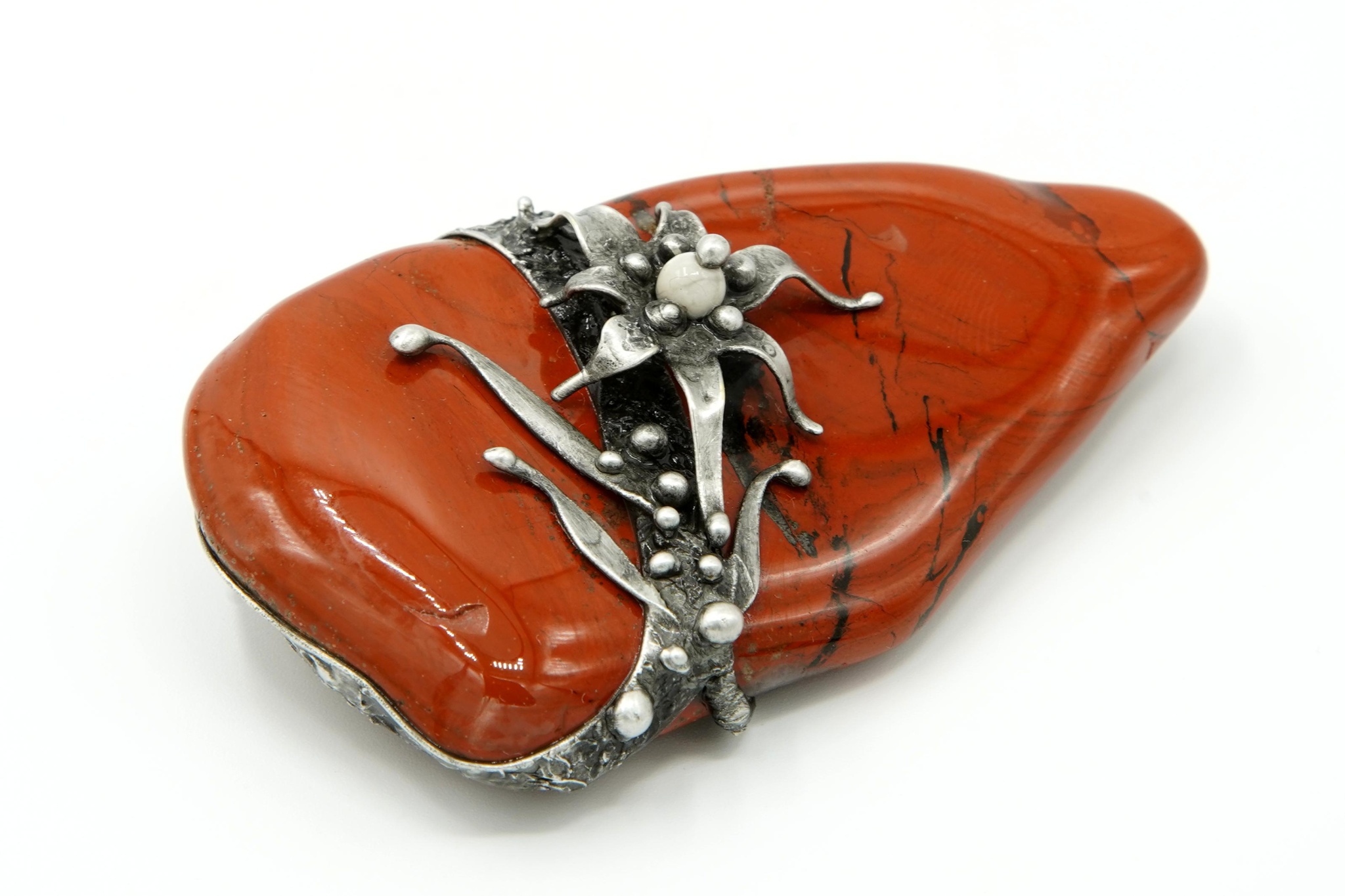 Koule broušená z jaspisu mokait, průměr 4,1 cm.