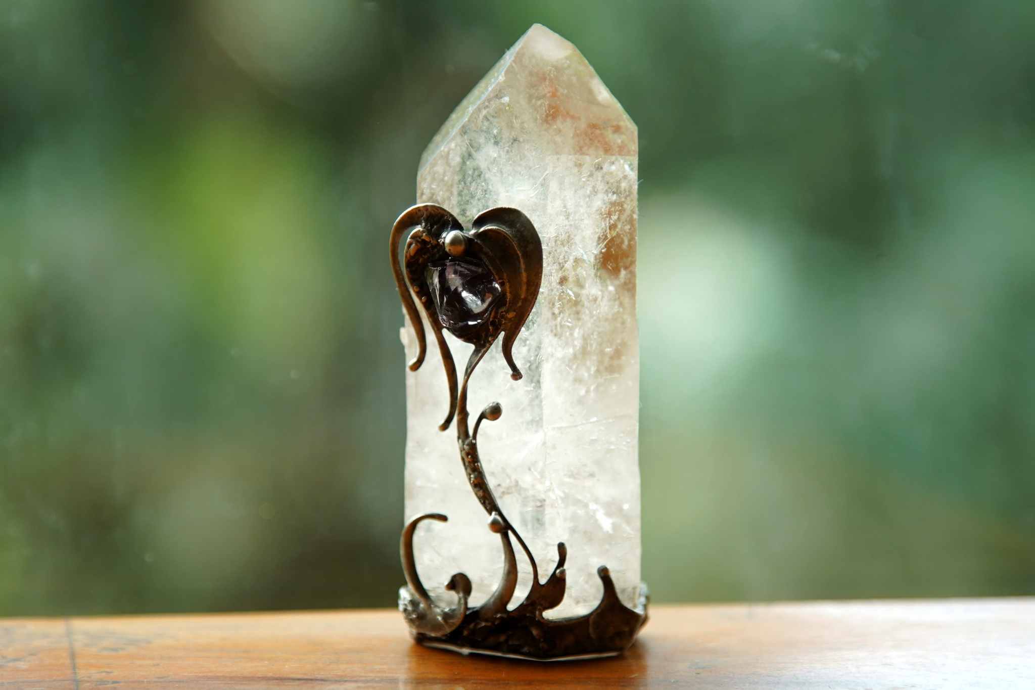 Náramek z valounků křišťálu, citrínu, ametystu a růženínu.