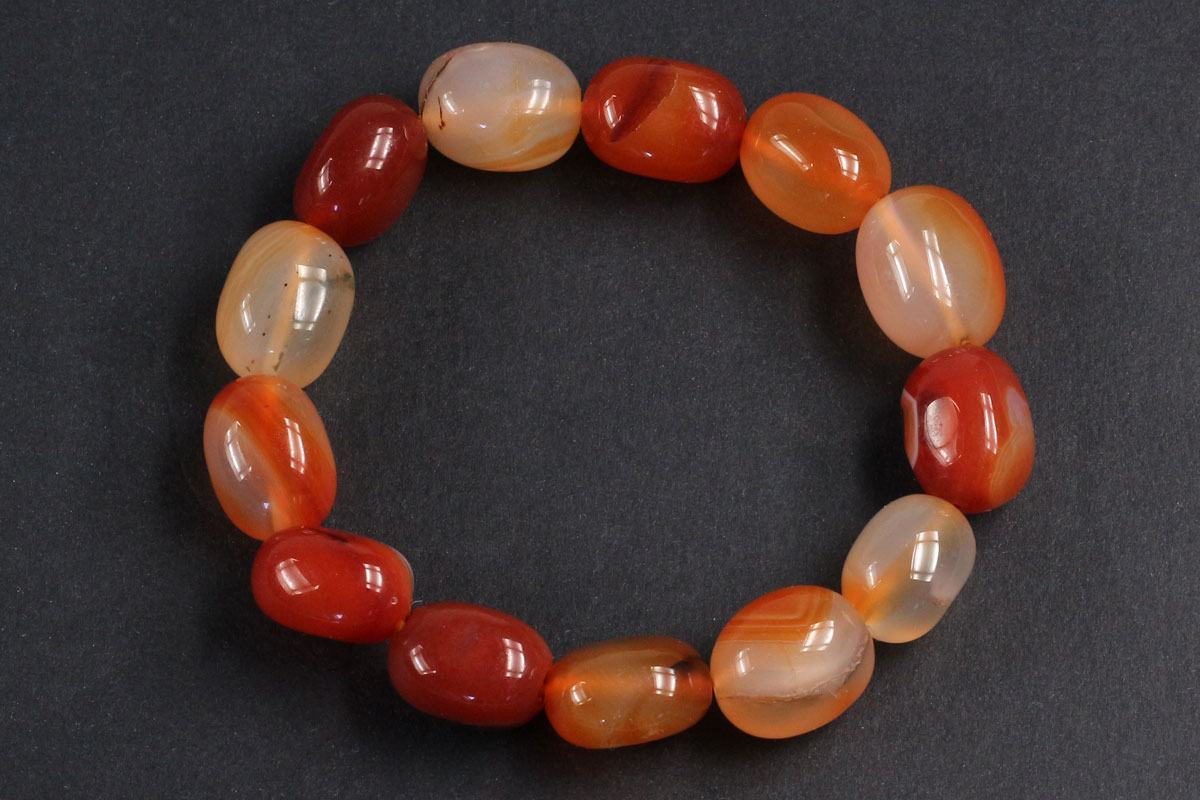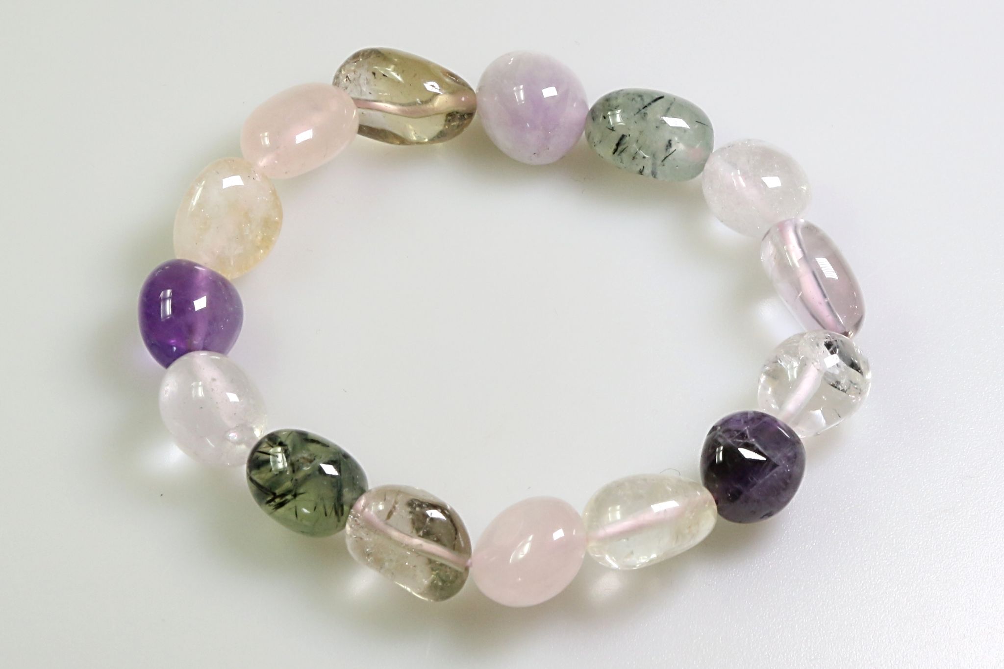 Náramek z valounků křišťálu, citrínu, ametystu a růženínu.