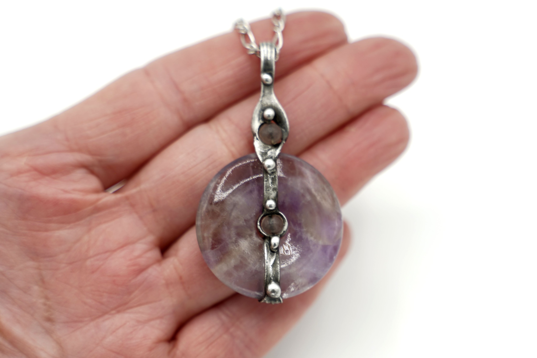 Náramek z valounků křišťálu s turmalínem.