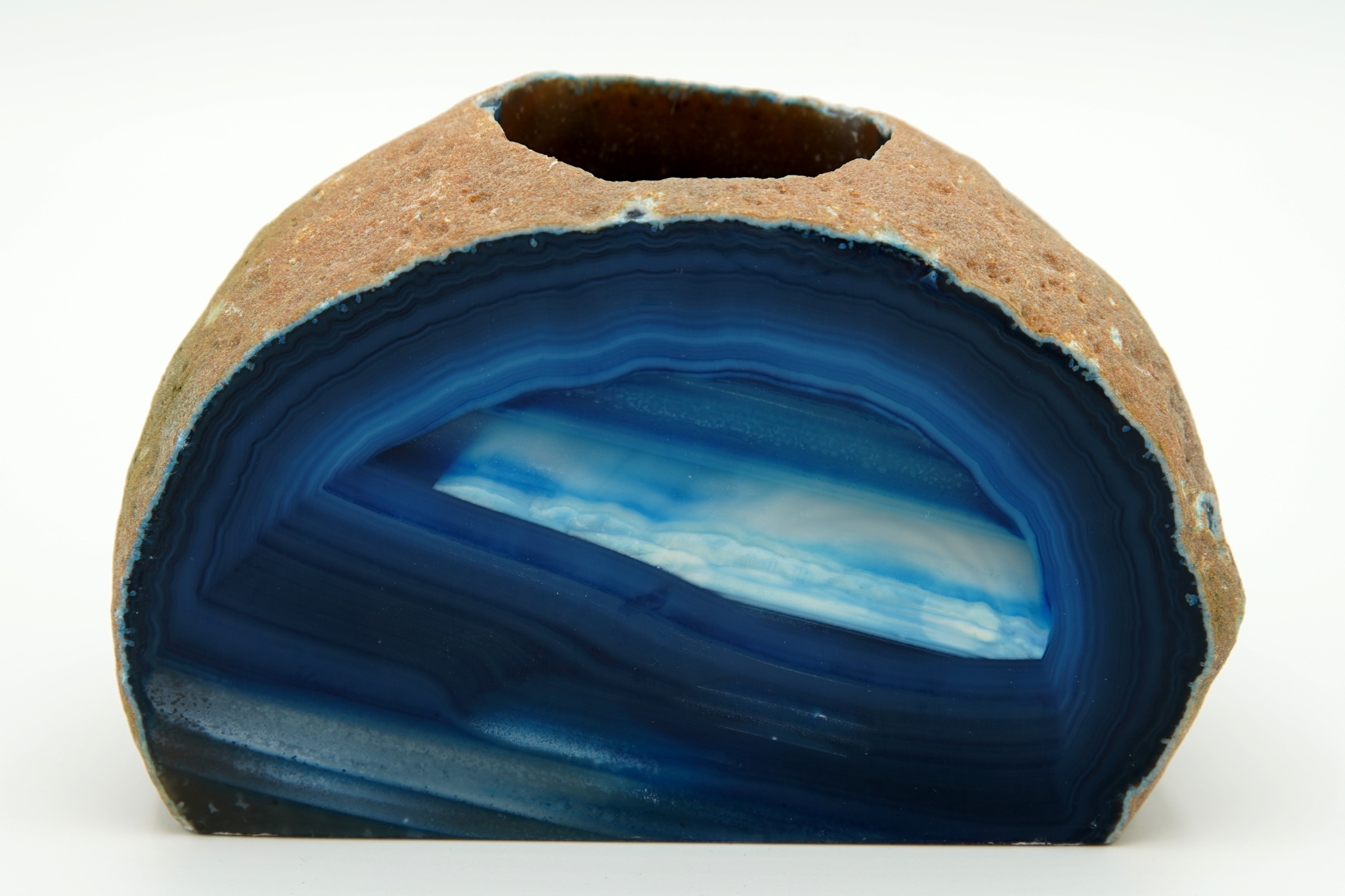 Achátová pecka dobarvená, se zbroušenou a leštěnou jednou plochou.