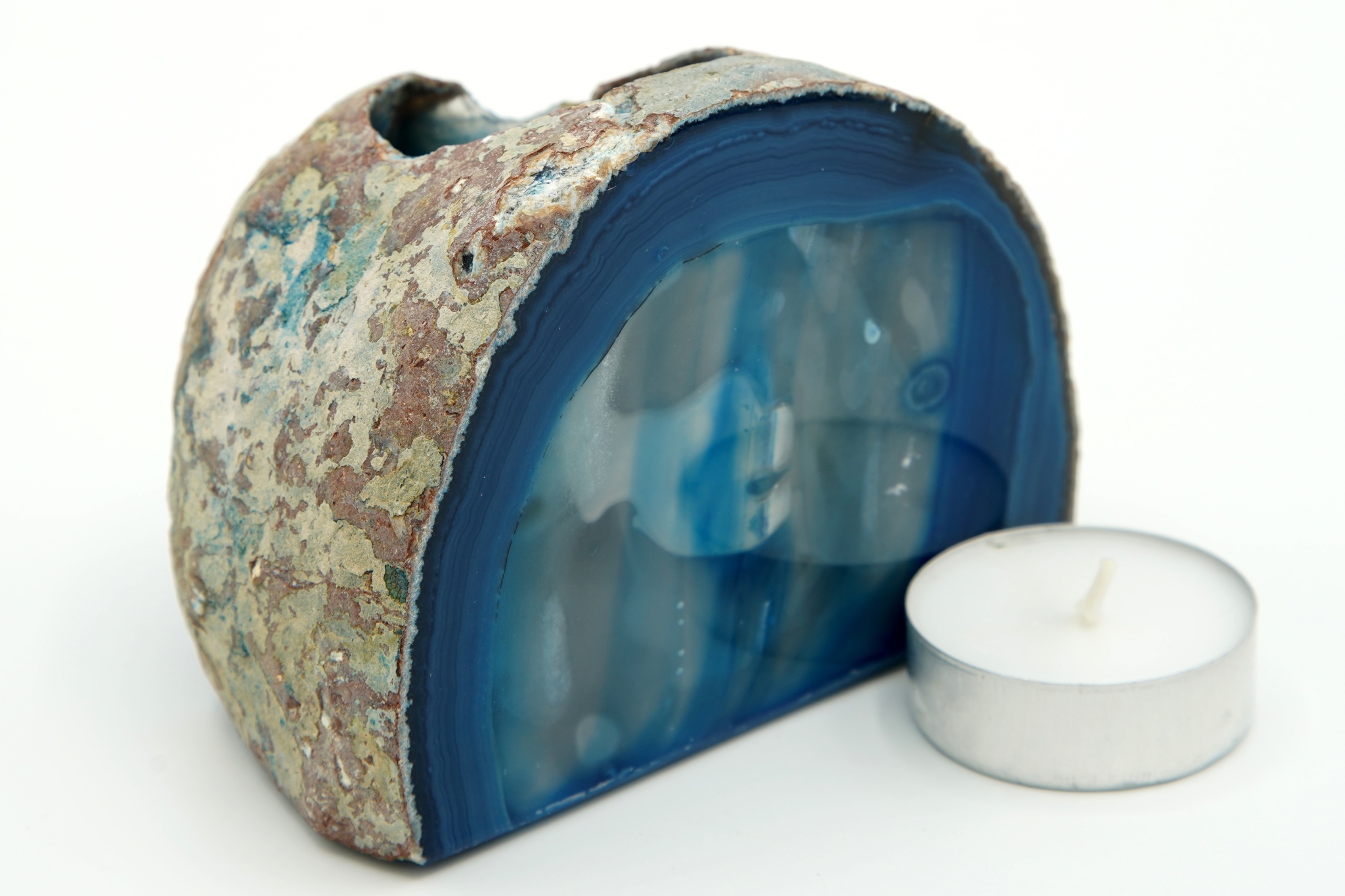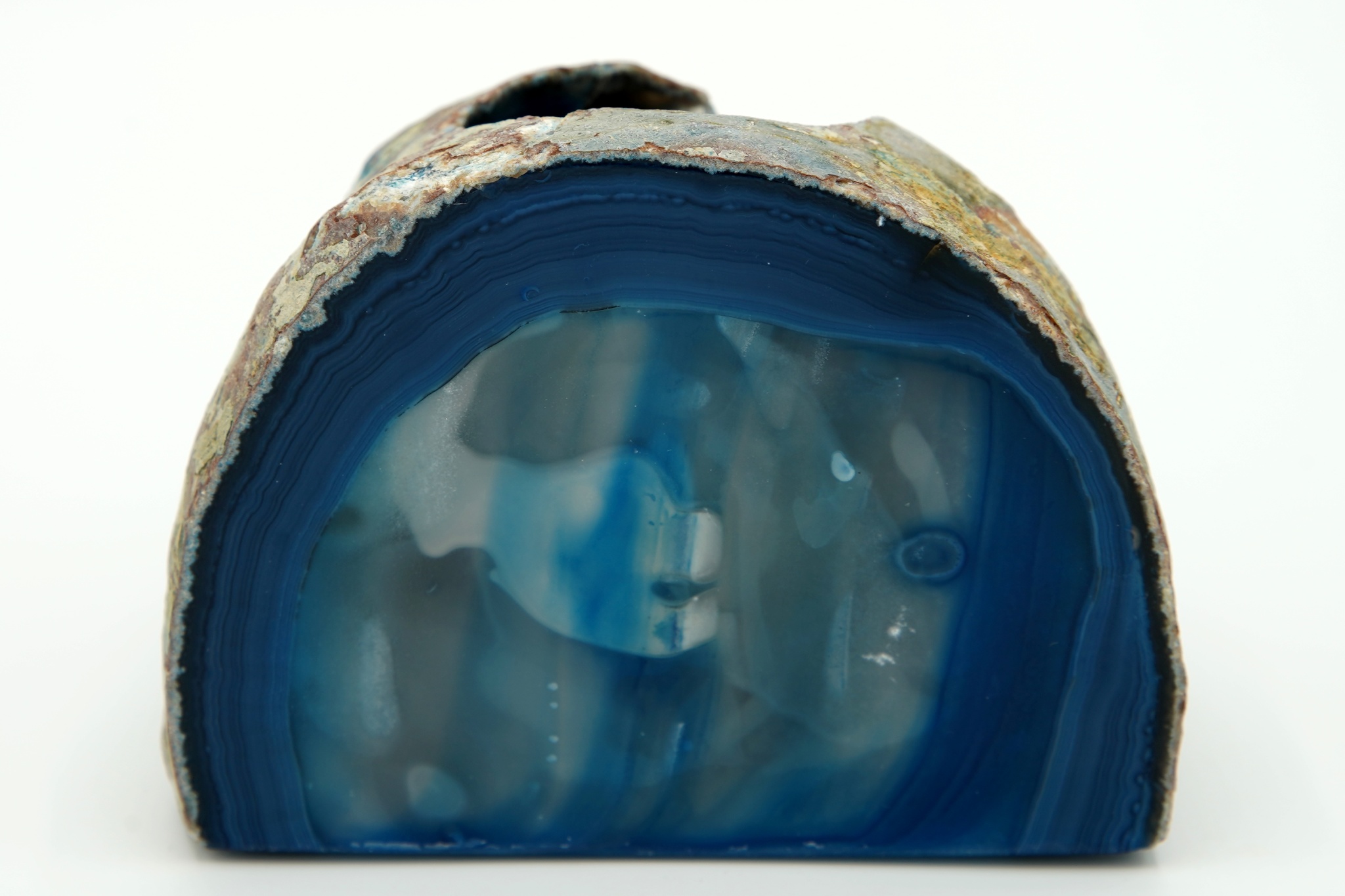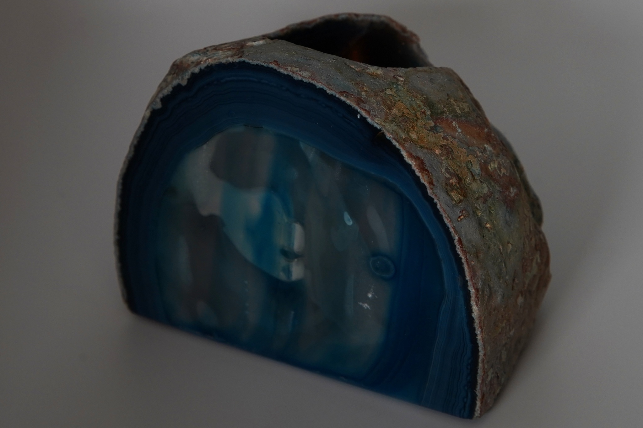 Achátová pecka dobarvená, se zbroušenou a leštěnou jednou plochou.