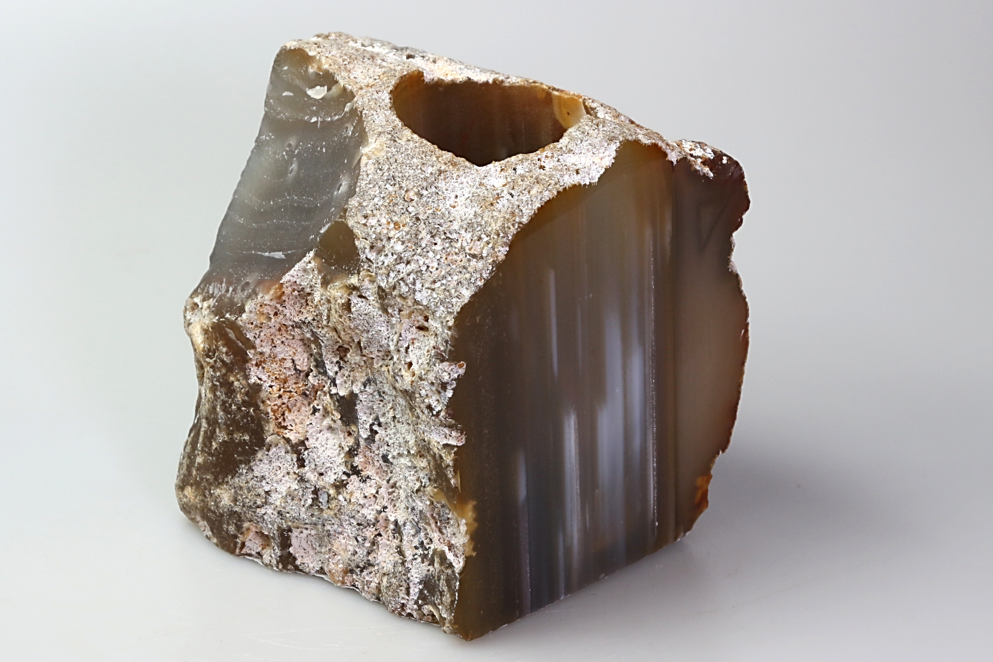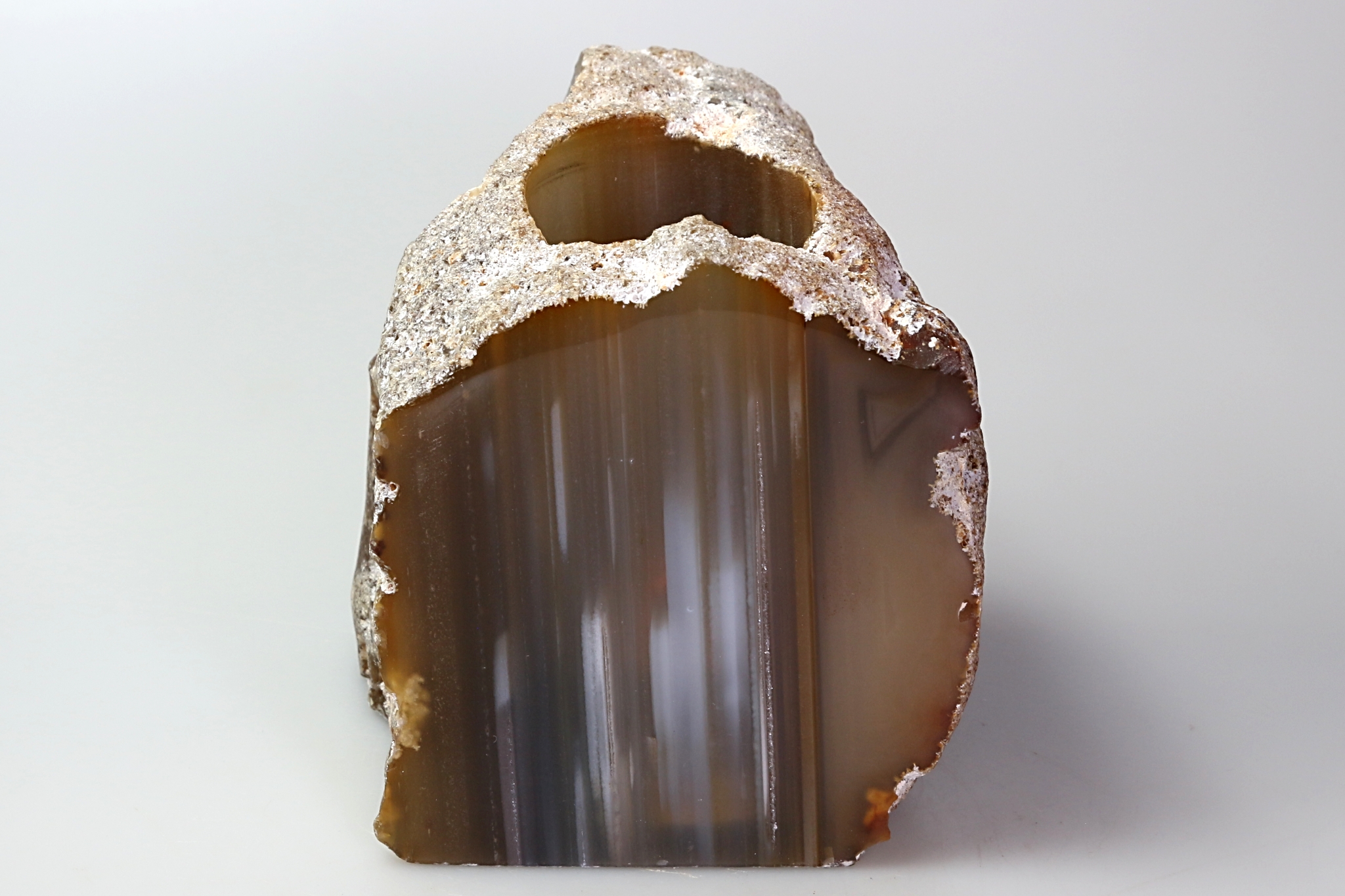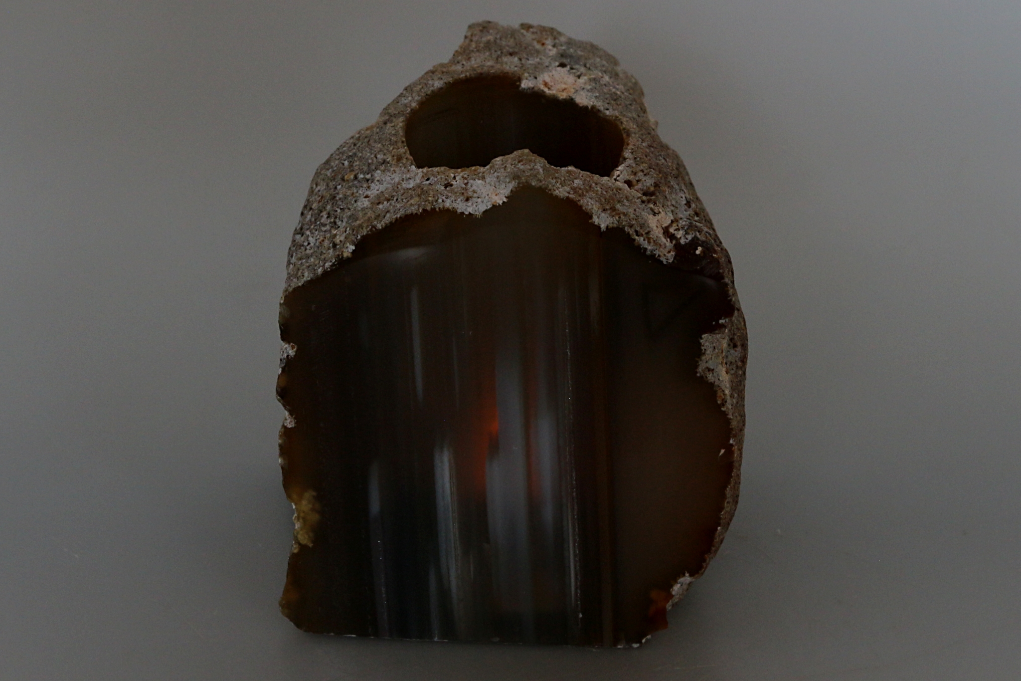 Větší achátová pecka natur - v přírodní barvě, se zbroušenou a leštěnou jednou plochou.