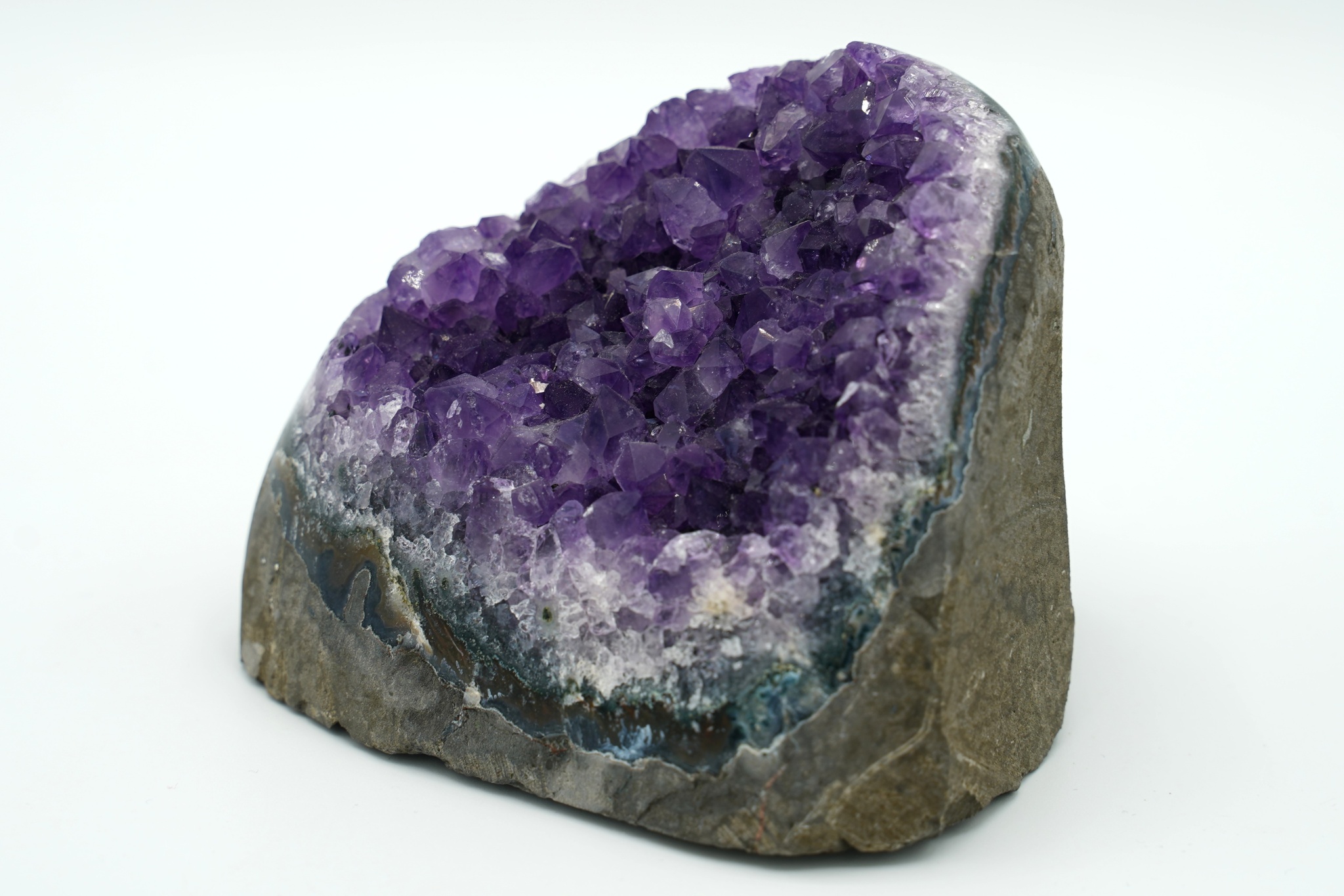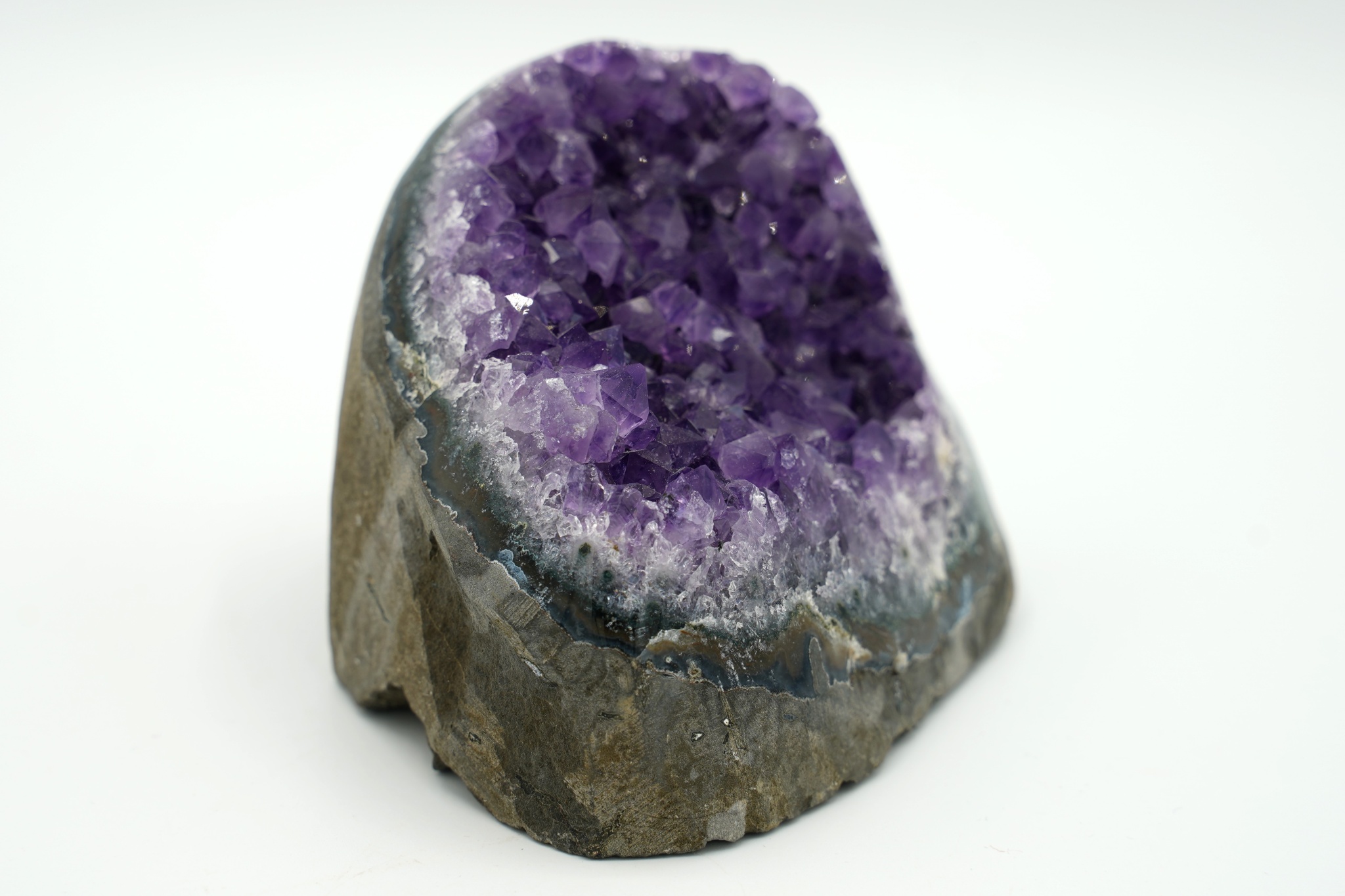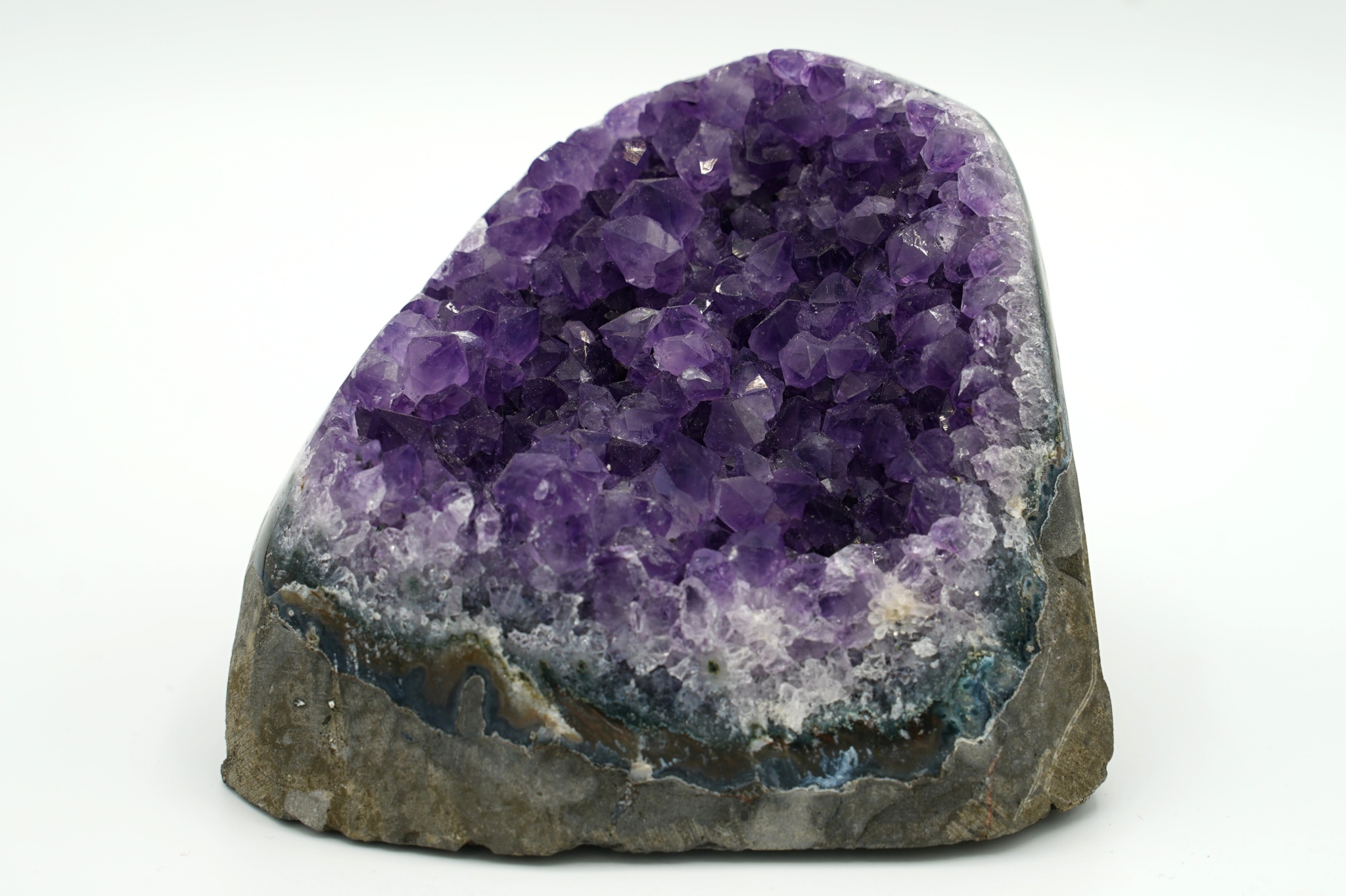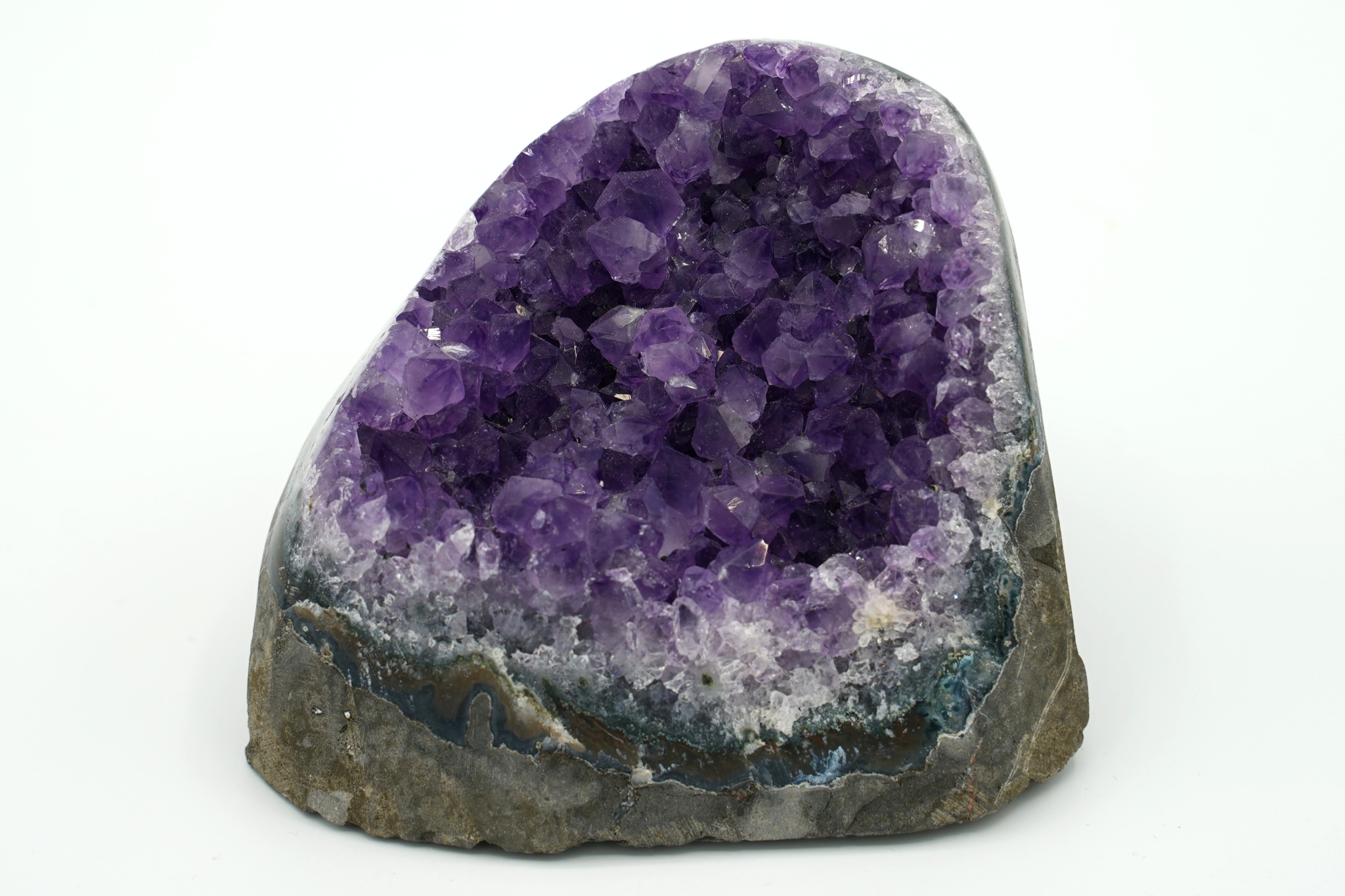 Ametystová drúza té nejvyšší kvality s krystalky temně fialové barvy, se zabroušeným a vyleštěným okrajem krystalového srůstu.