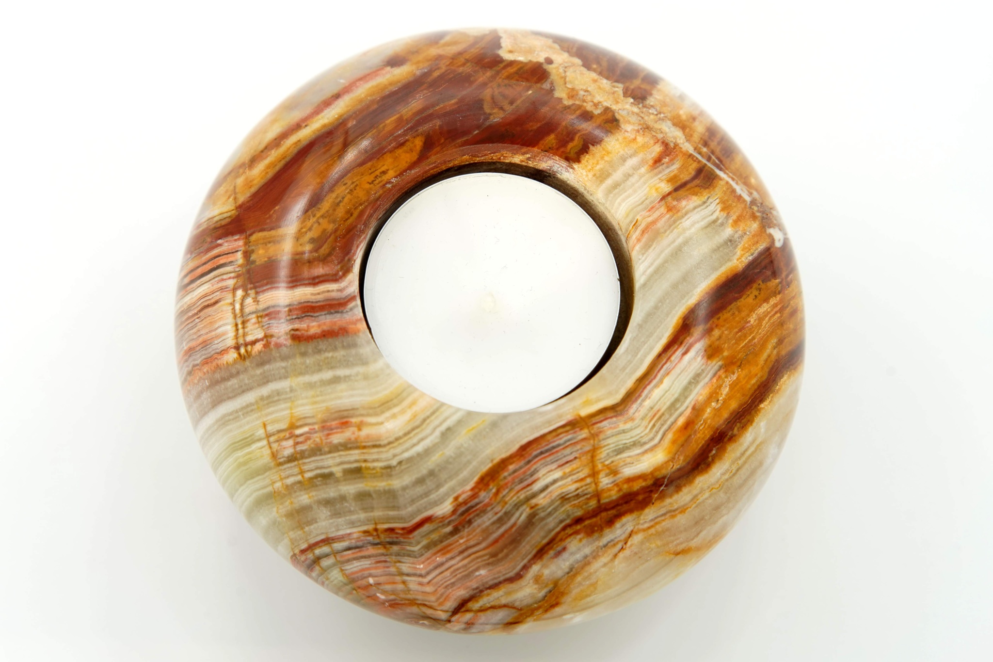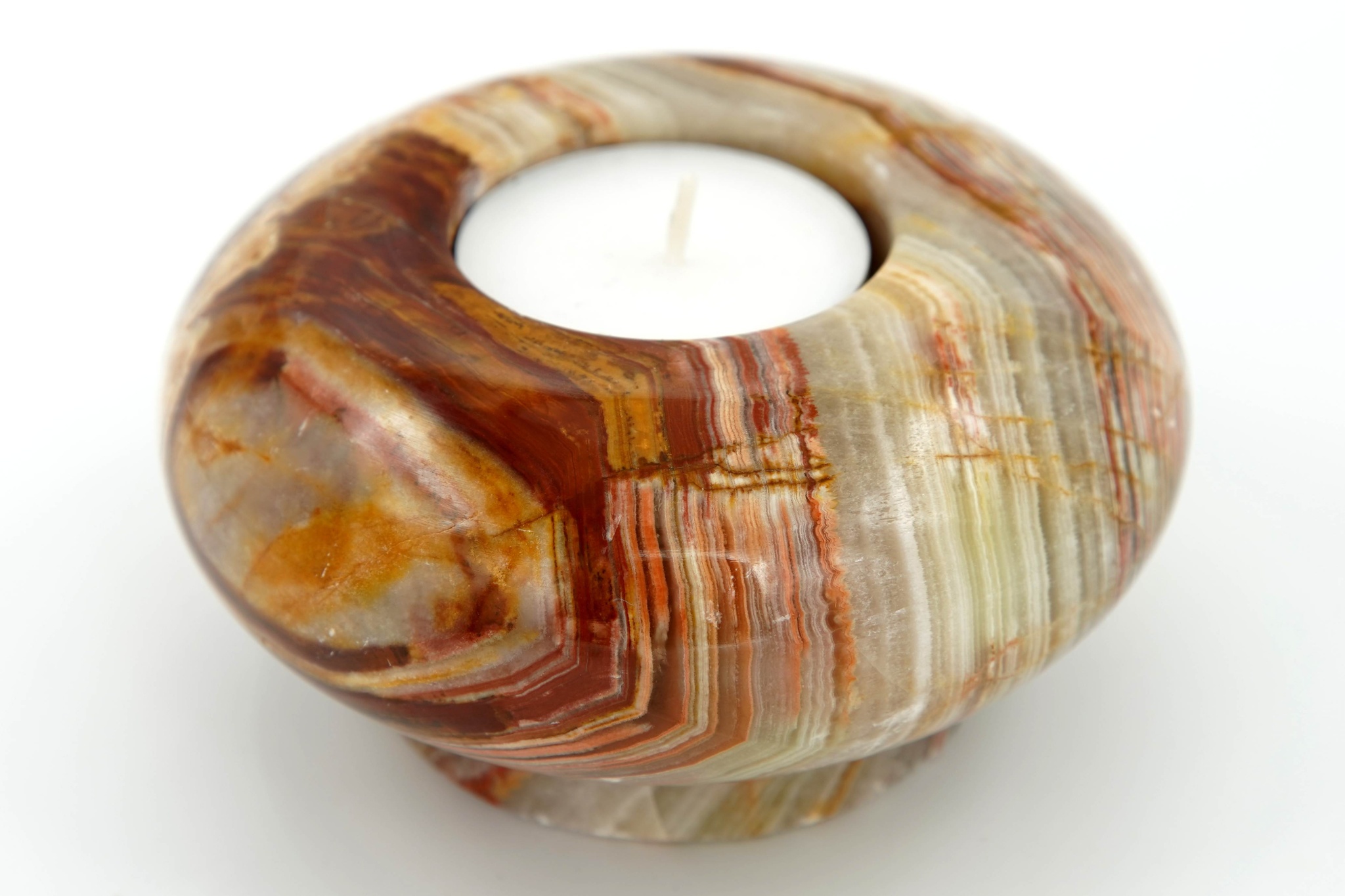 Svícen vybroušený z pákistánského aragonitu na nožičce, na čajovou svíčku.