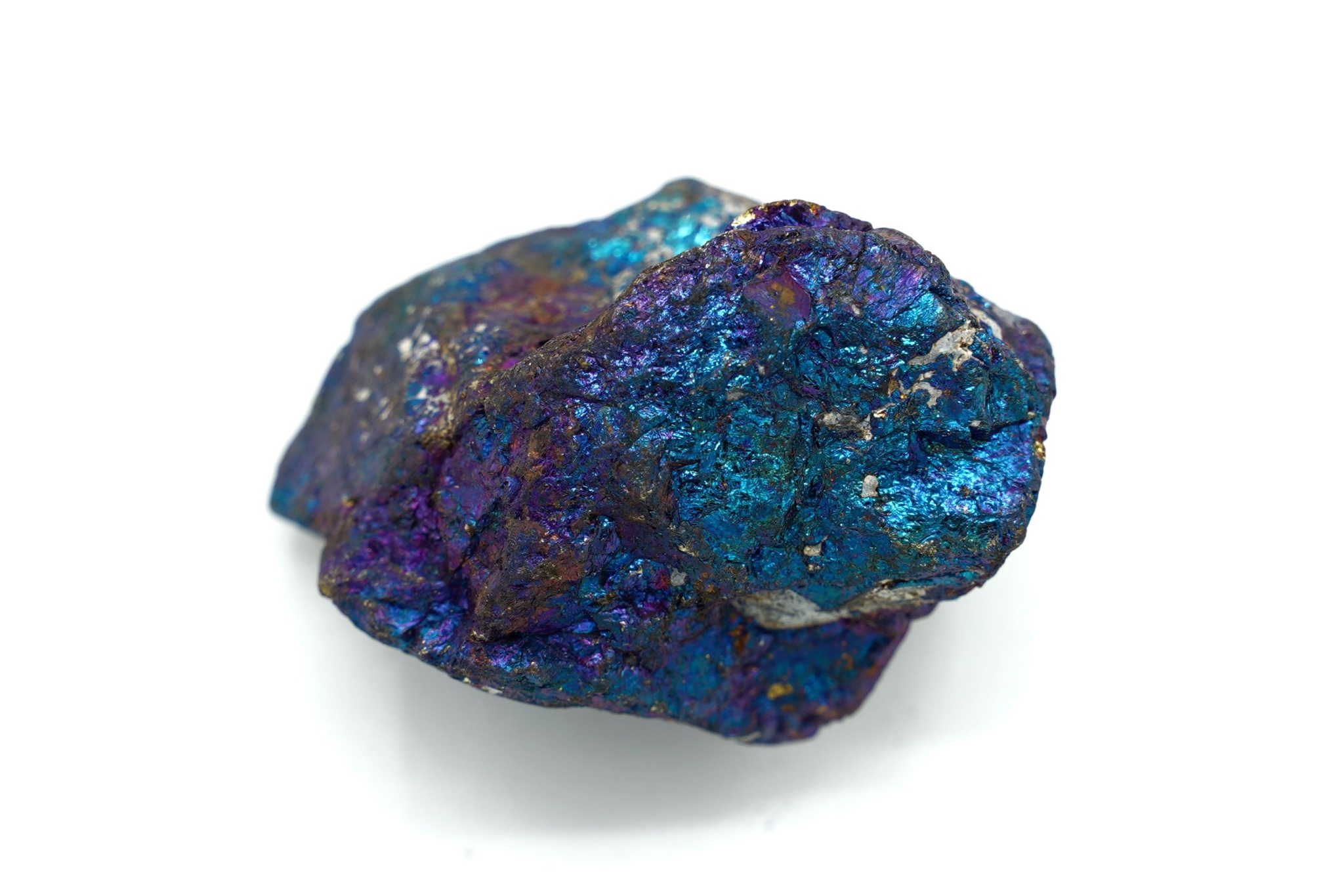 Jedná se o mimerál obsahující měď železo a síru, agregát má pestrou škálu barev (od mosazně žluté a zlato-žluté, po kovově modro-fialovou). Barva je dána stálou oxidací nebo také výskytem dalších minerálů.