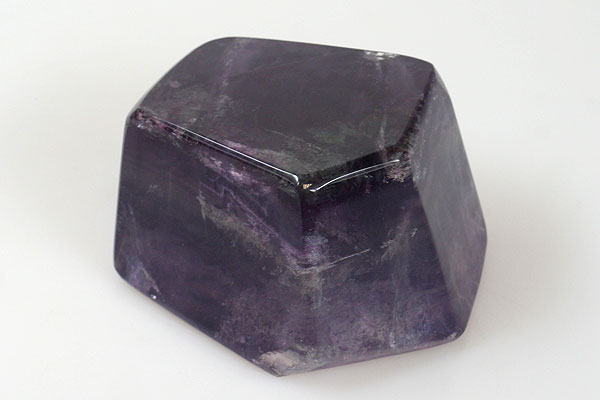 Těžítko z duhového fluoritu vybroušené tak, aby vynikla krása kamene a vyleštěné do vysokého lesku.