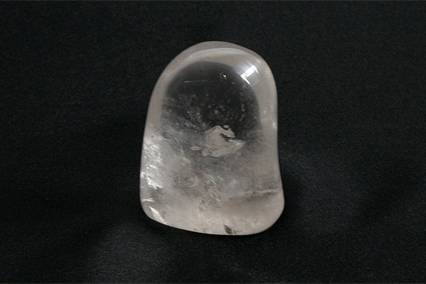 Křišťál opracovaný do tvaru homole se zbroušenou podstavou.