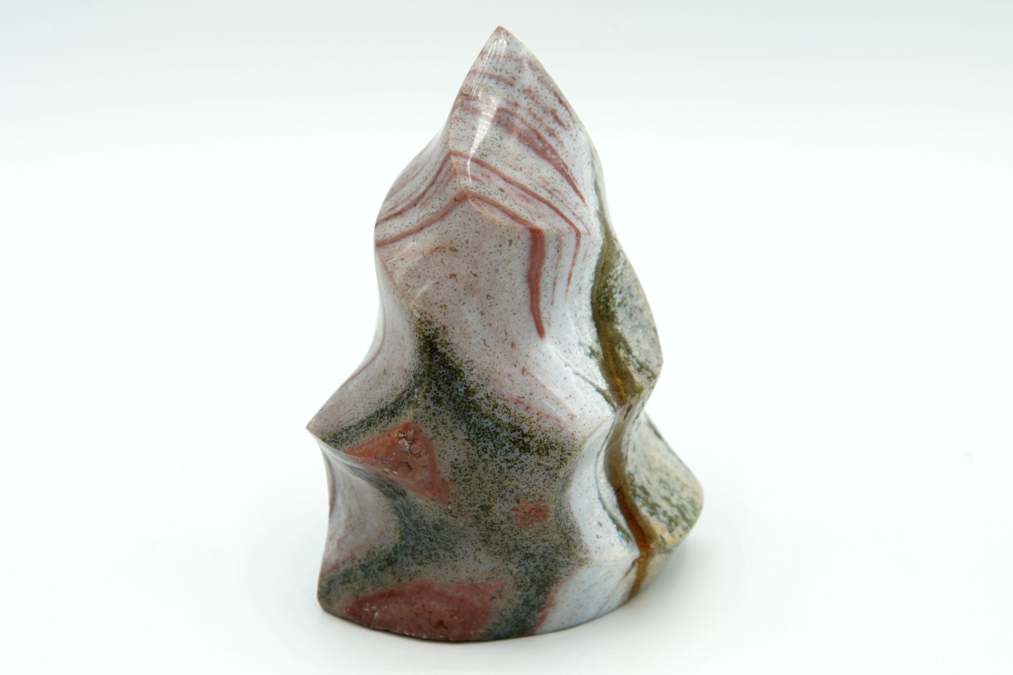 Jaspis vybroušený do tvaru plamene, výška 9,7 cm.