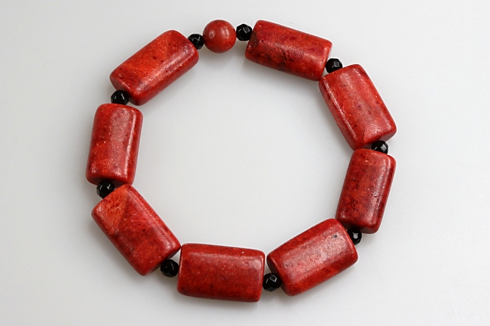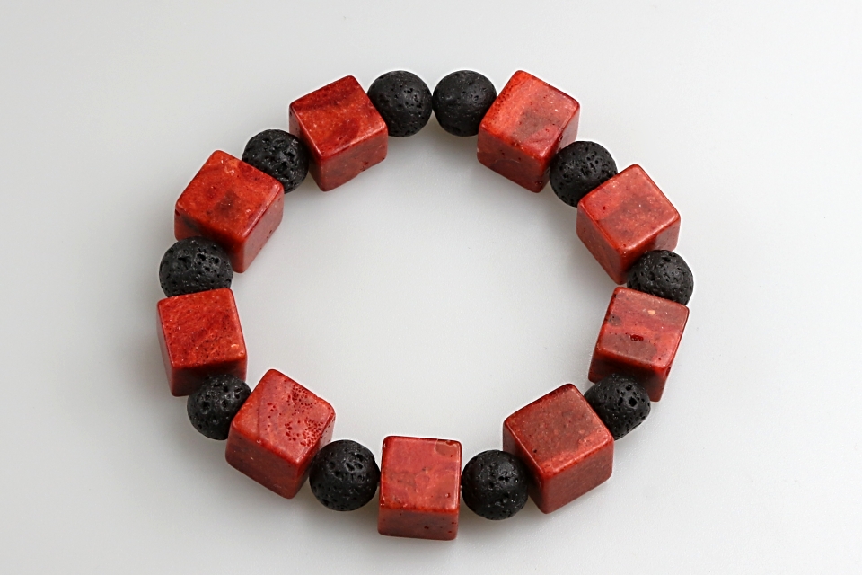 Velikost kostek korálu je cca 1,2 cm a průměr lávových kuliček je 1 cm.