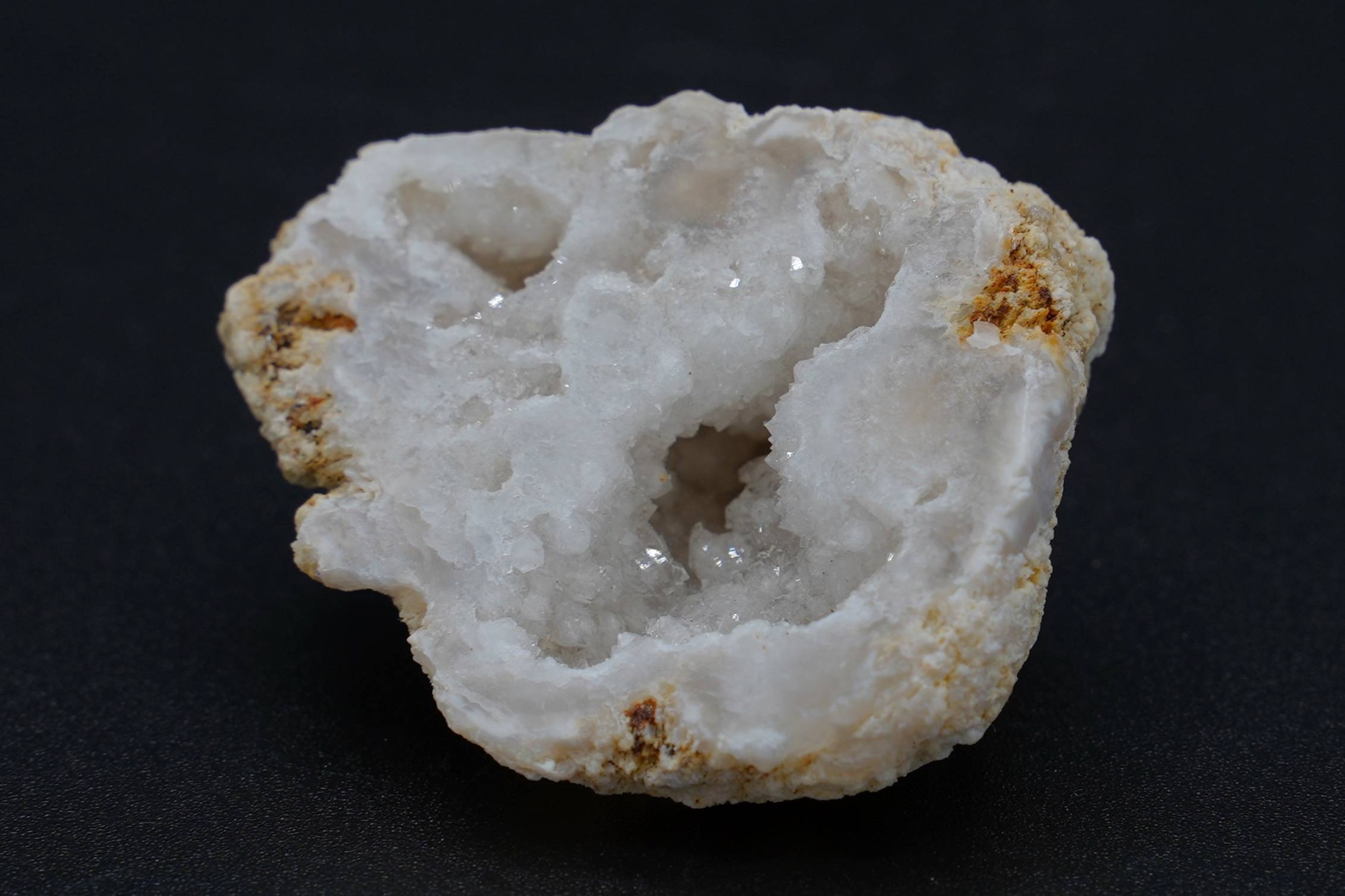 Geoda z křišťálu s leštěným okrajem.