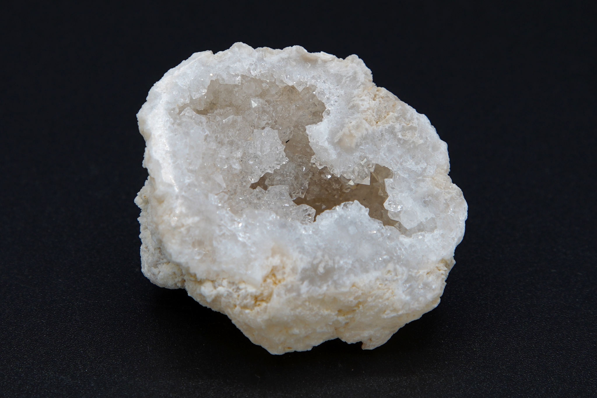 Malá geoda z křišťálu, s leštěným okrajem, dutina je tvořena krystaly křišťálu. Velmi dekorativní kámen. Země původu Brazílie. Rozměry cca 4,5 x 3,8 hloubka 2,5 cm.