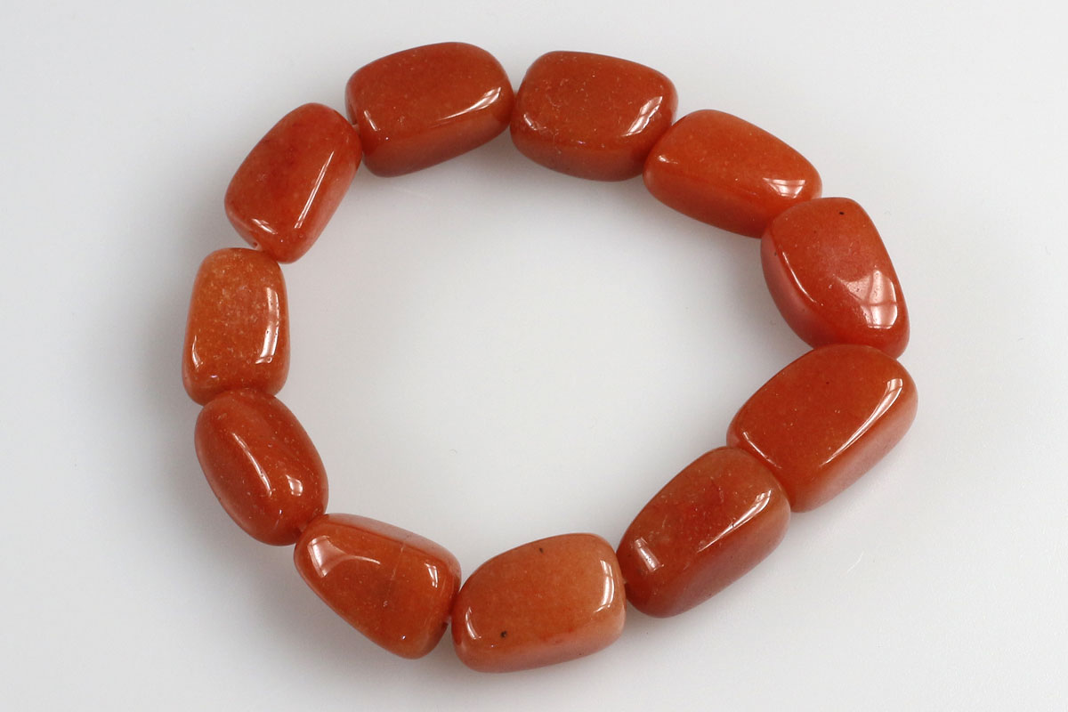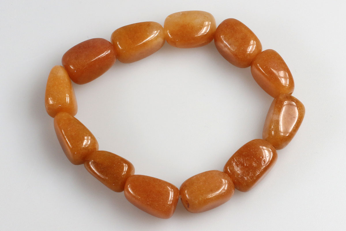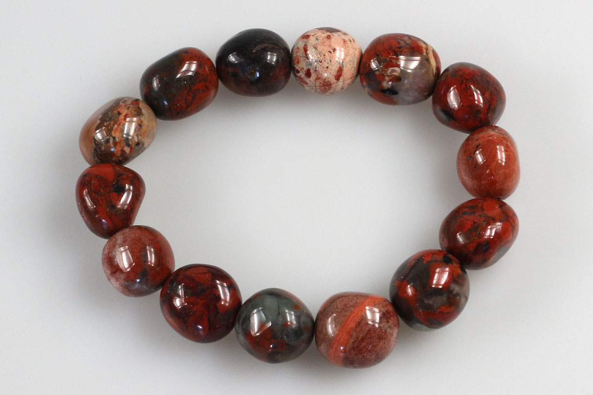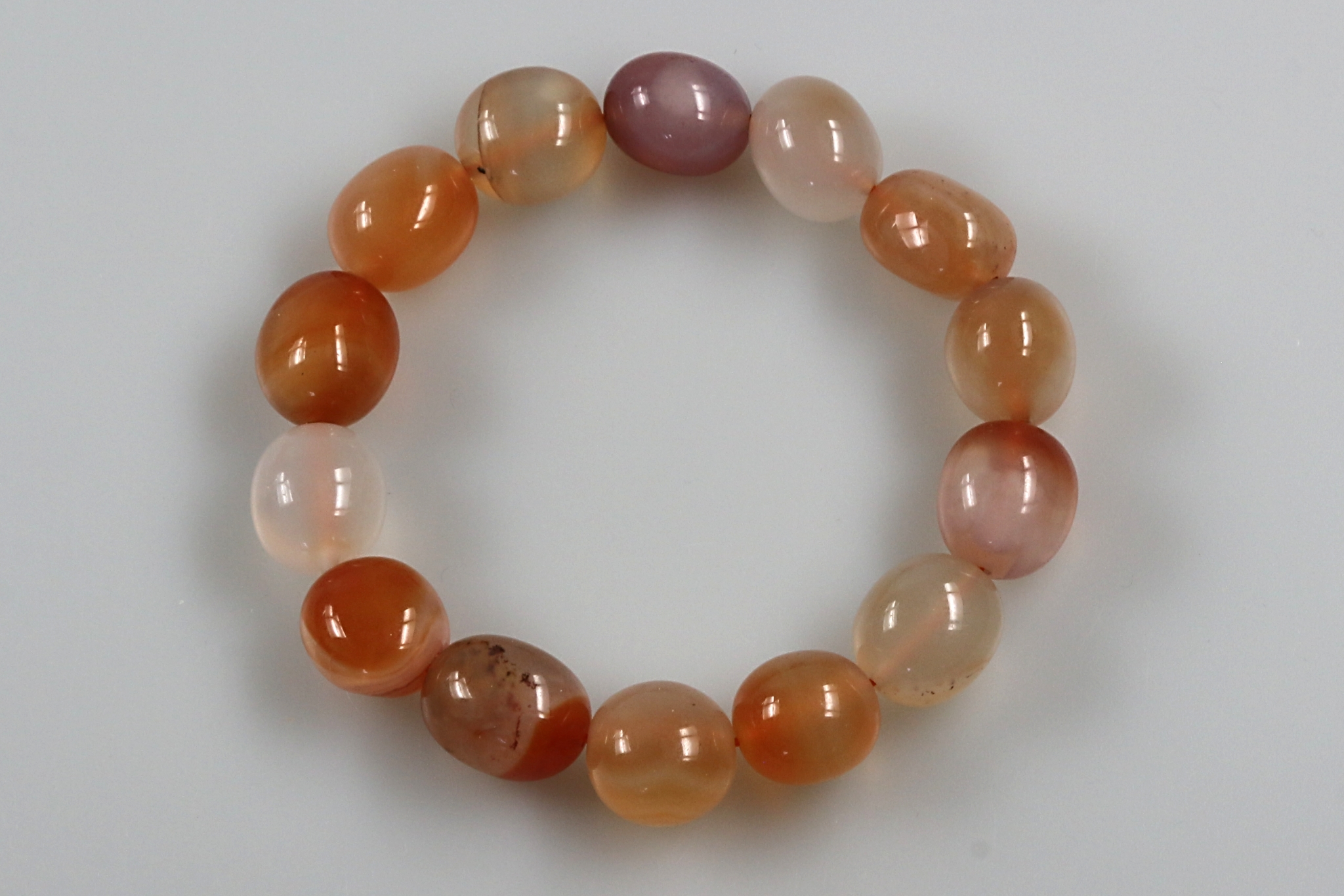 Náramek z leštěných, pravidelných valounků křišťálu, citrínu, ametystu a růženínu.