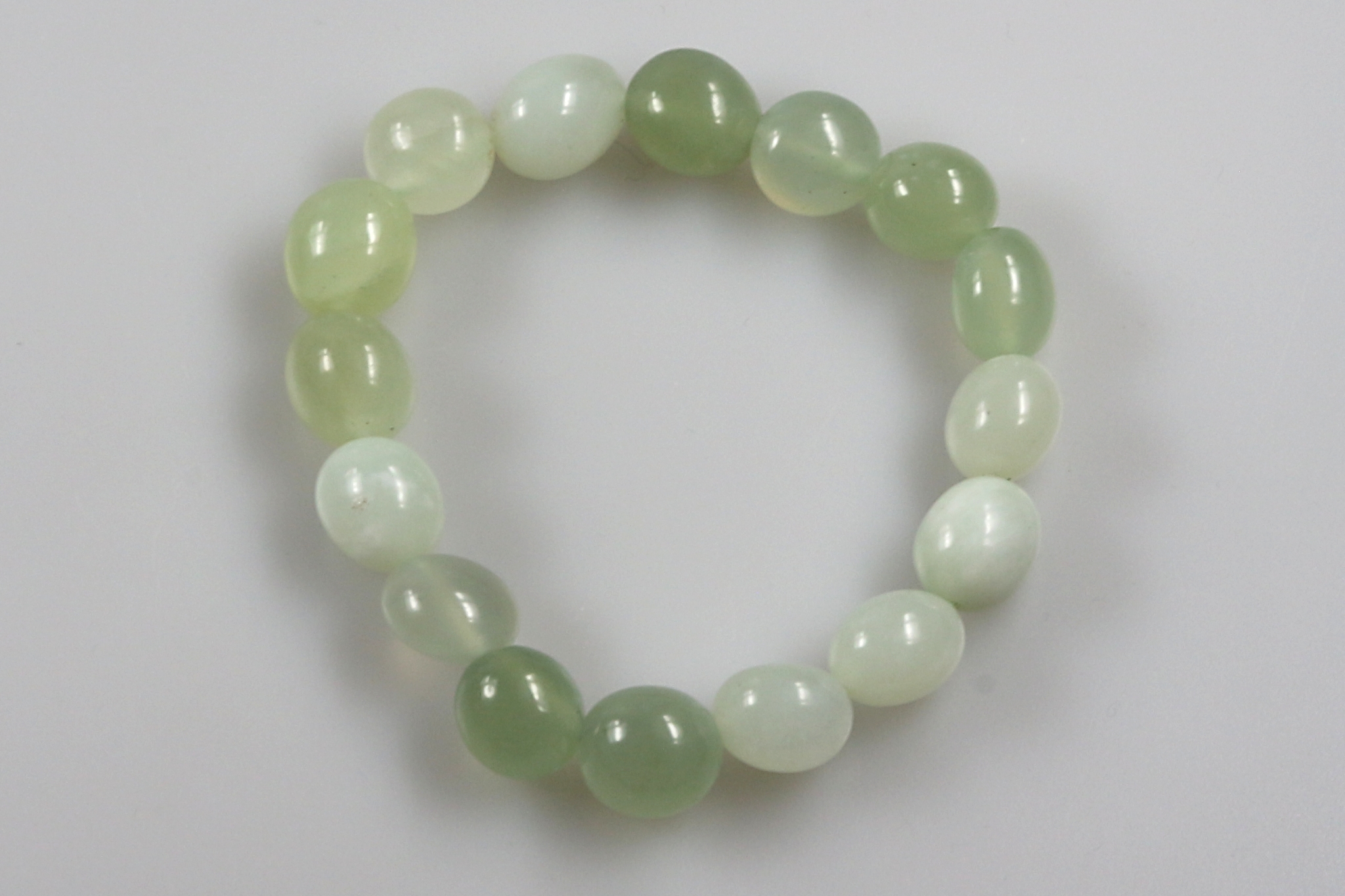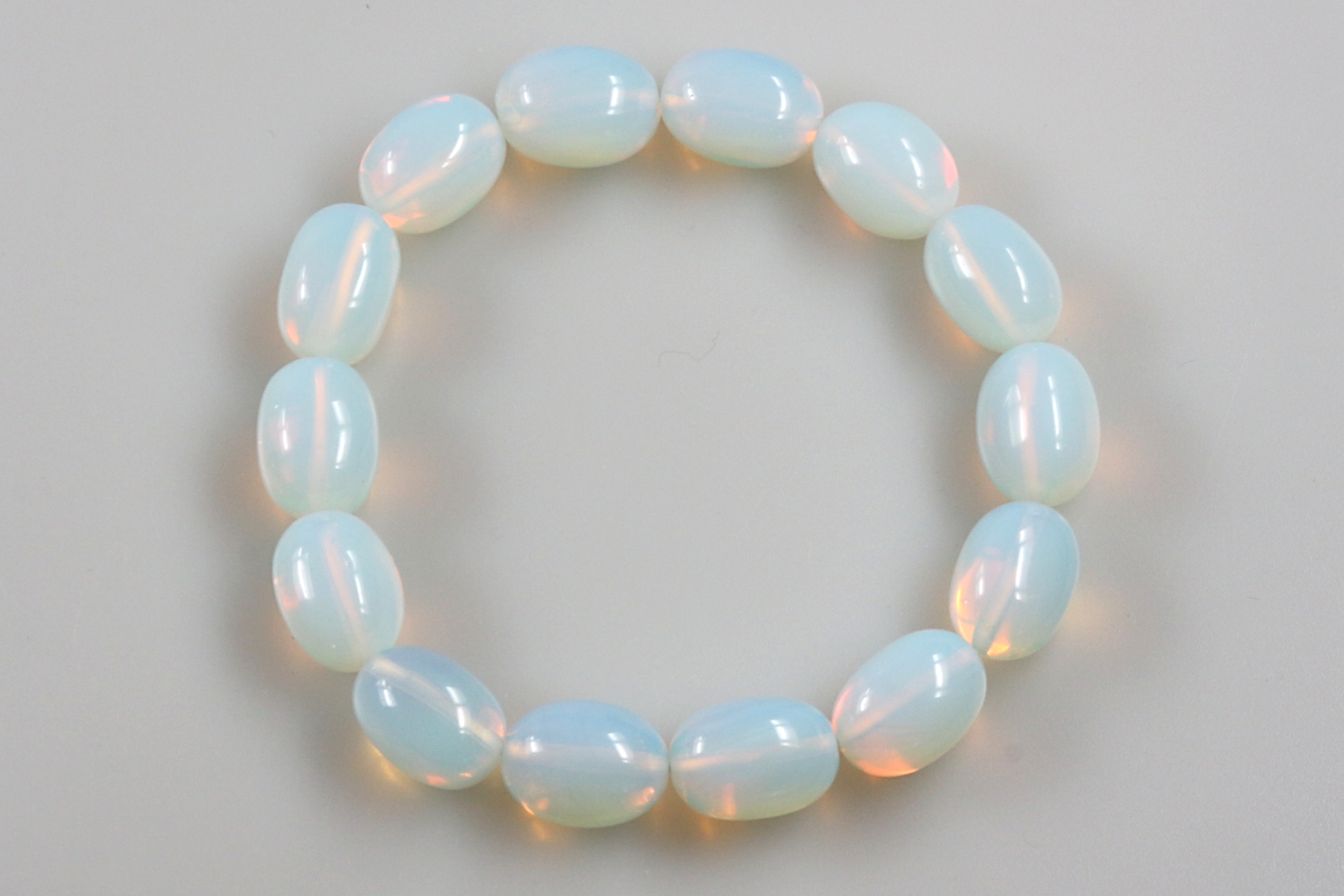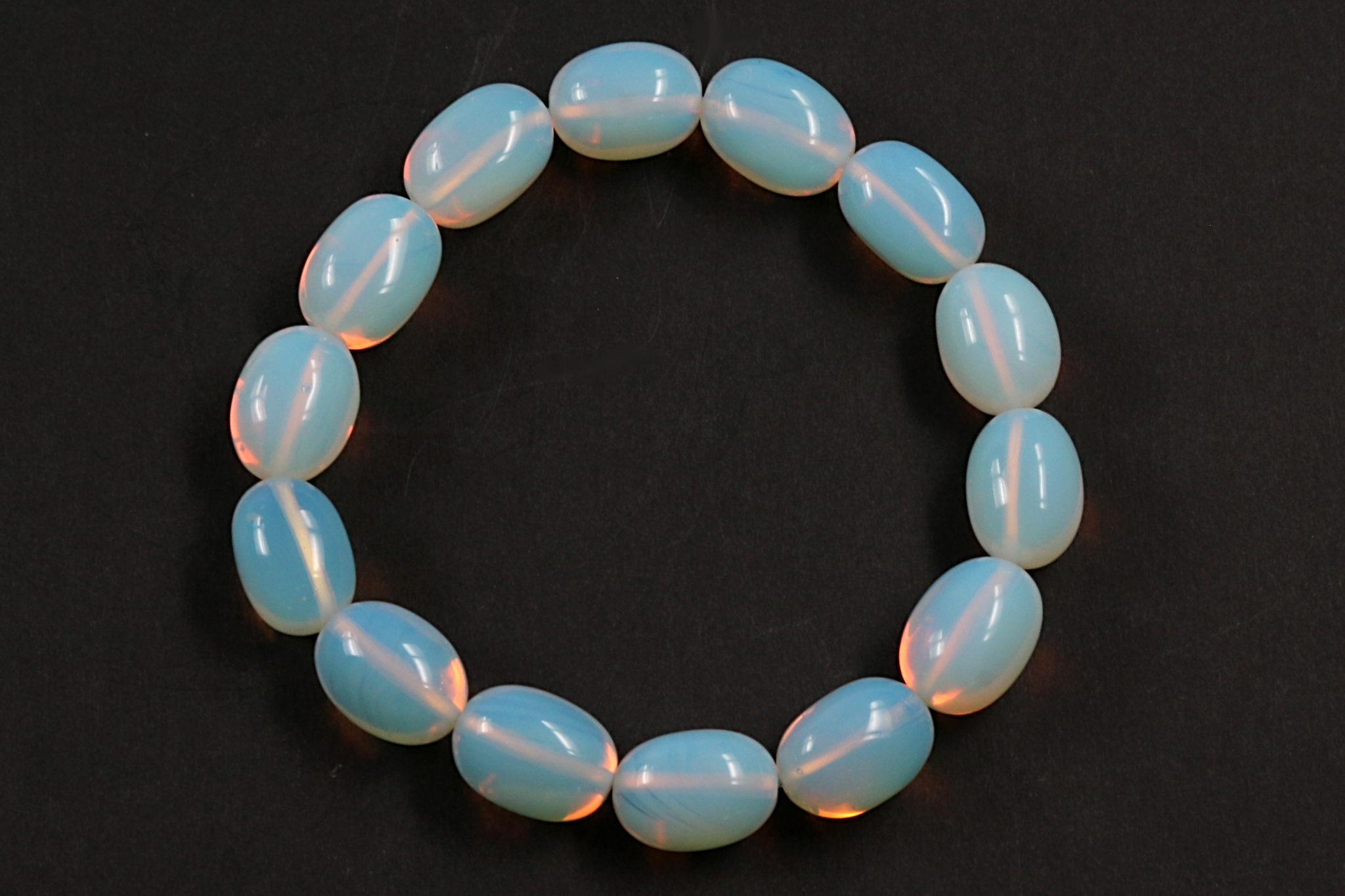 Náramek z leštěných, pravidelných valounků křišťálu, citrínu, ametystu a růženínu.