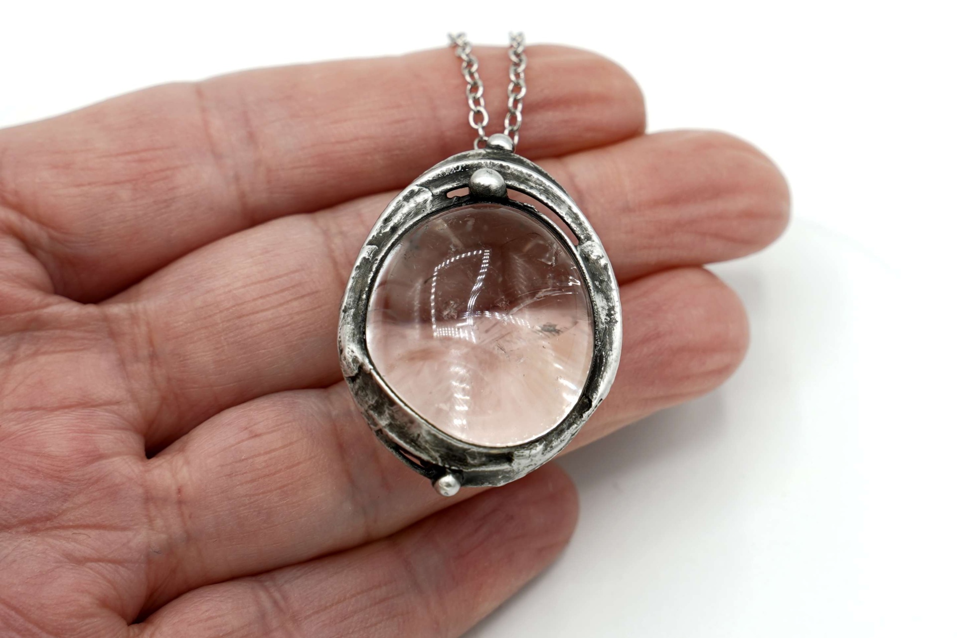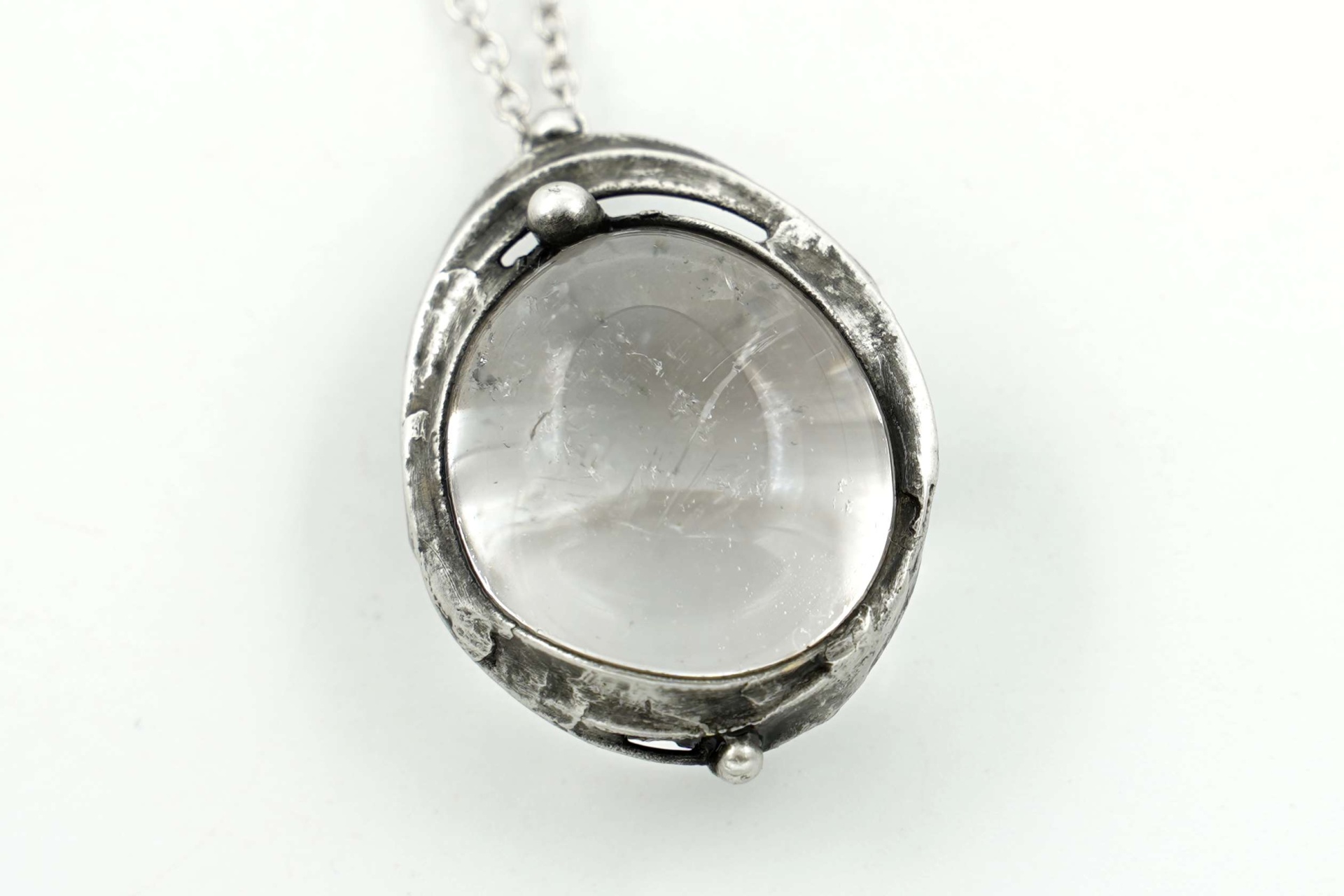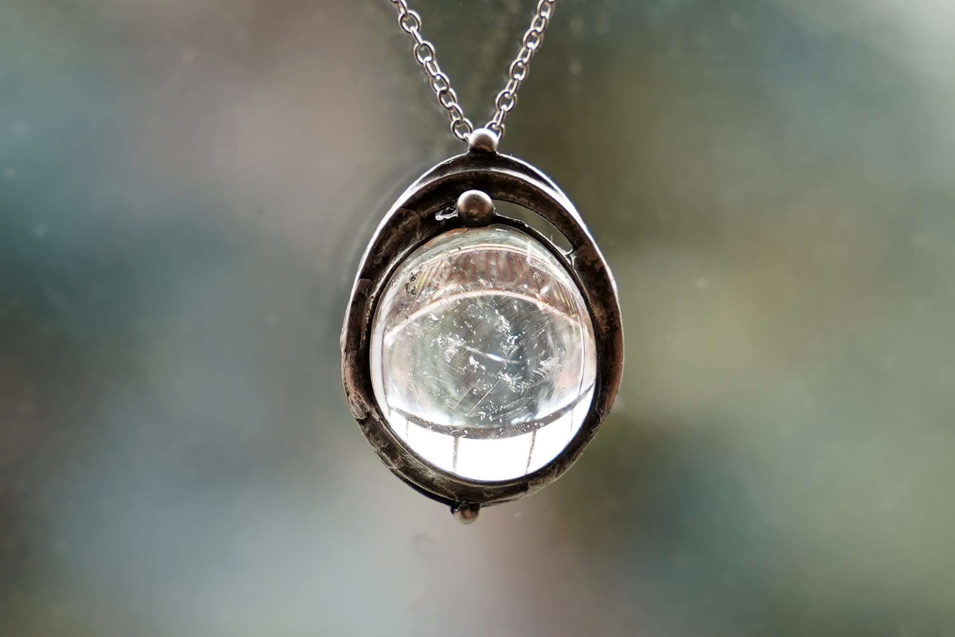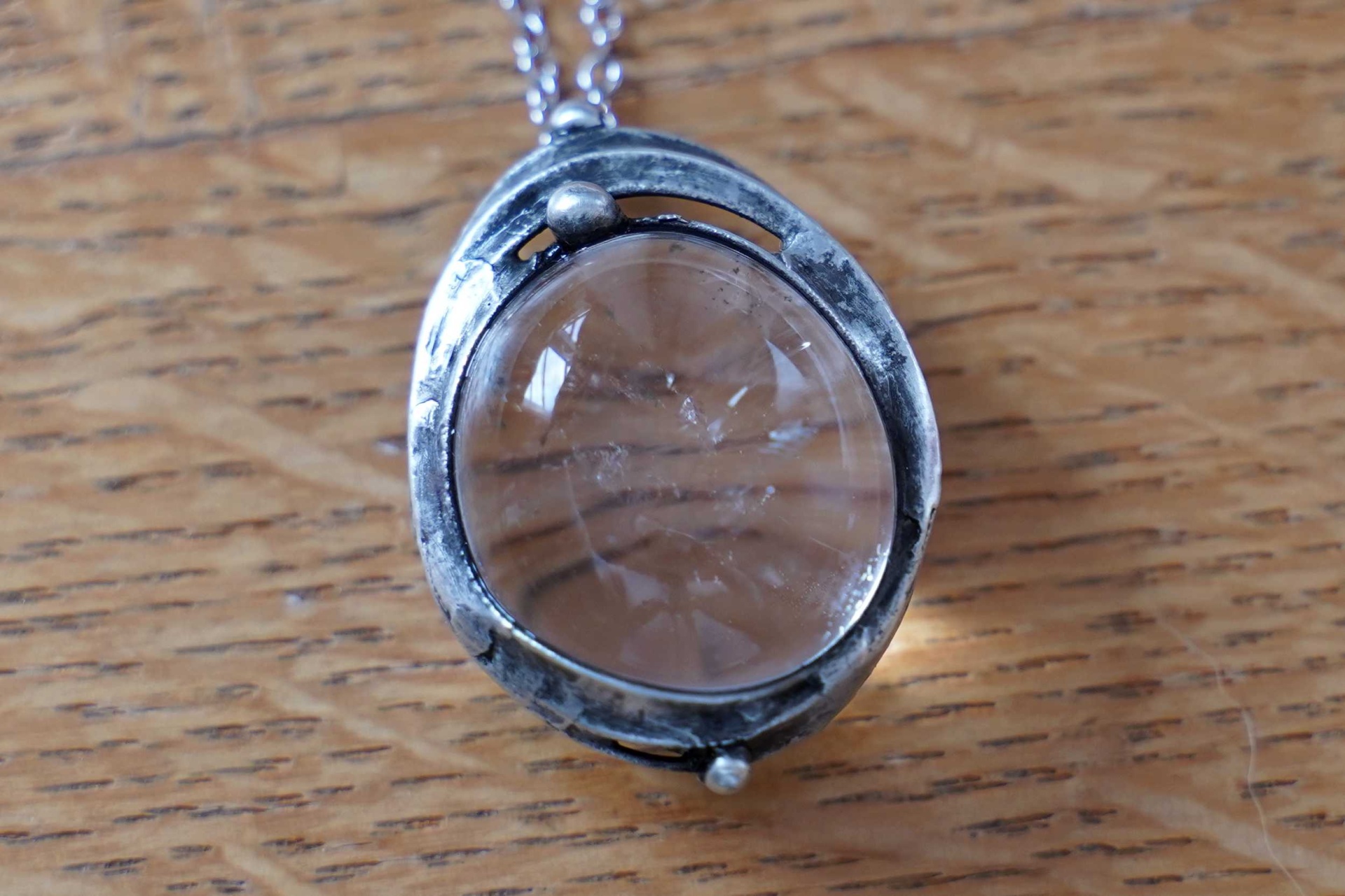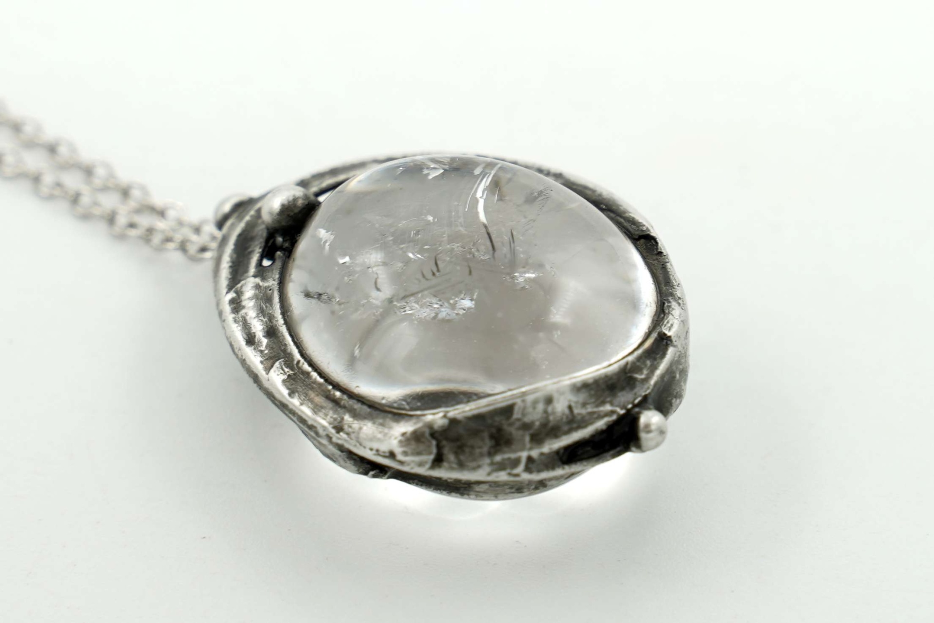 Náhrdelník s valounkem křišťálu (kvalita AAA), z bezolovnatého cínu, patinován, ošetřen proti oxidaci.