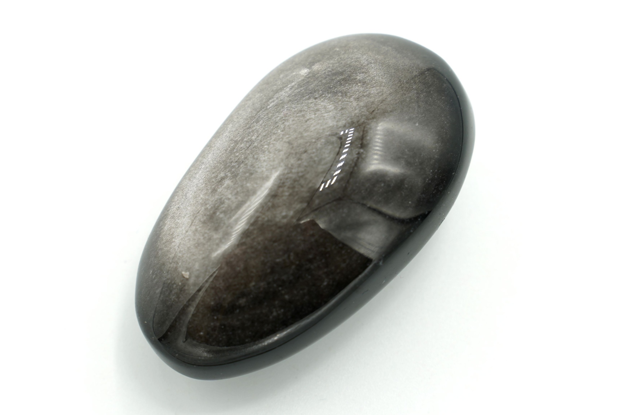 Obsidián stříbrný mýdlo - hmatka, velikost 5,6 x 3,3, tloušťka 2,5 cm.