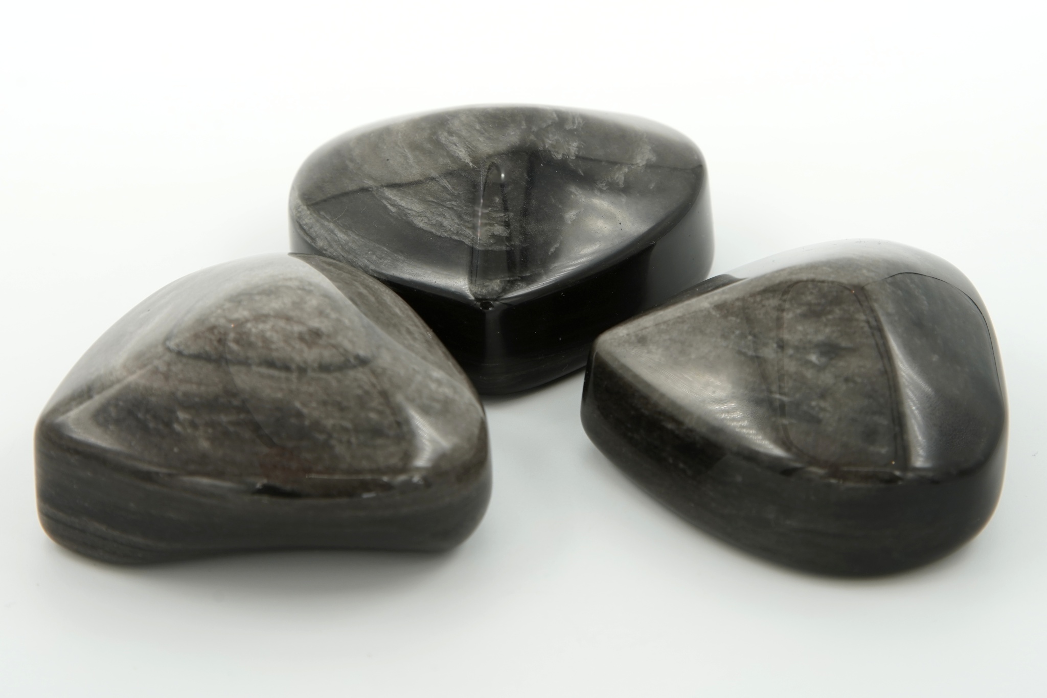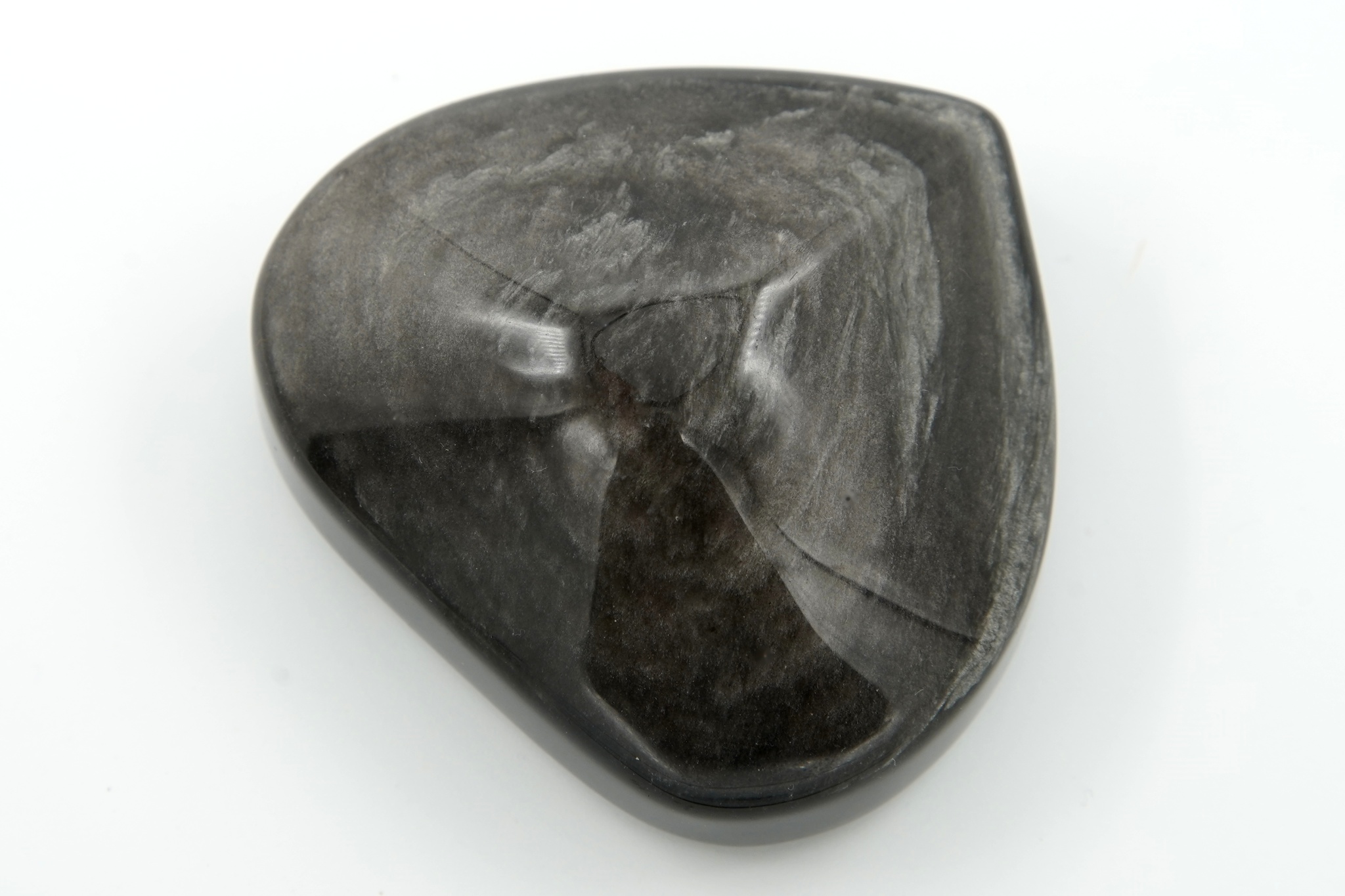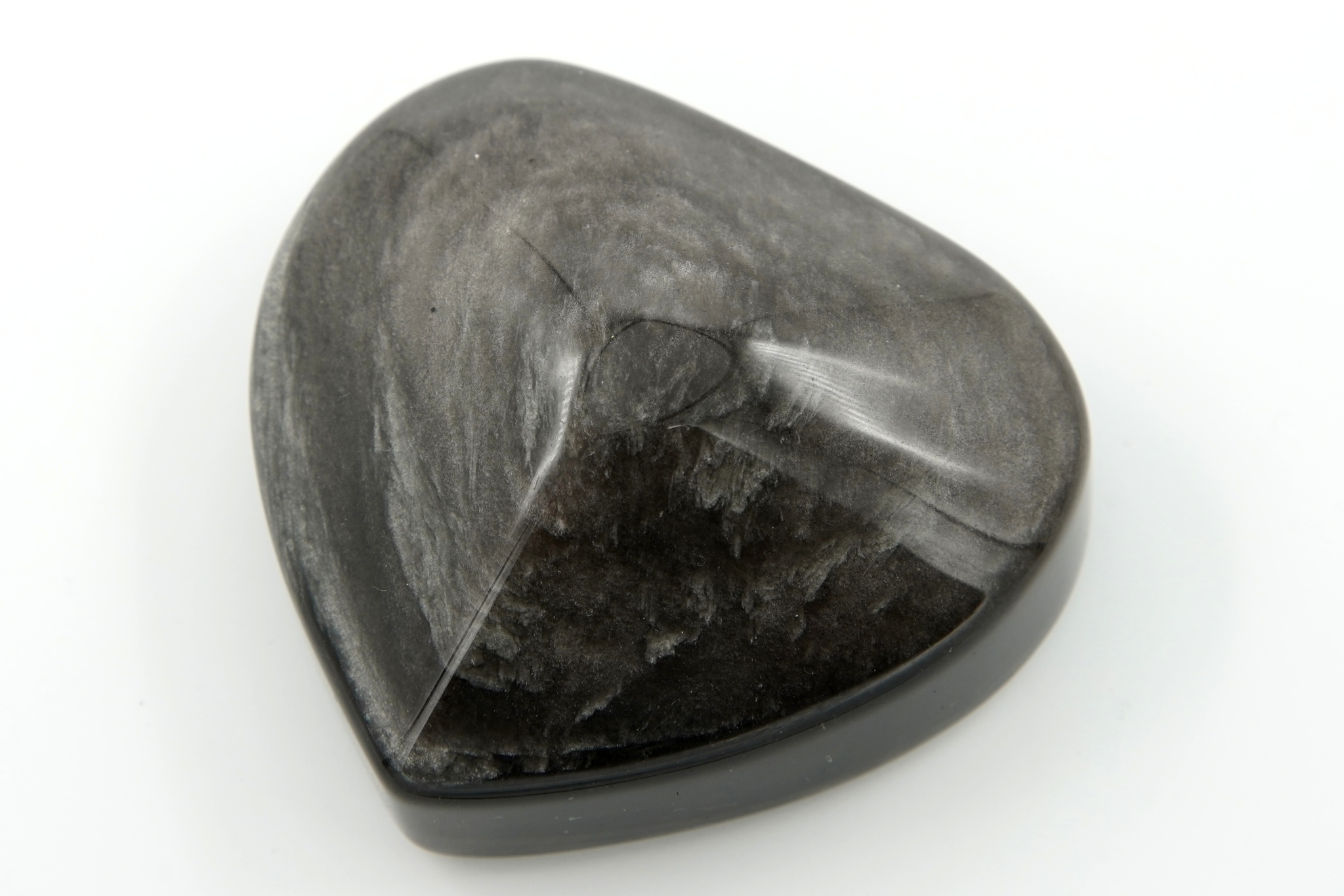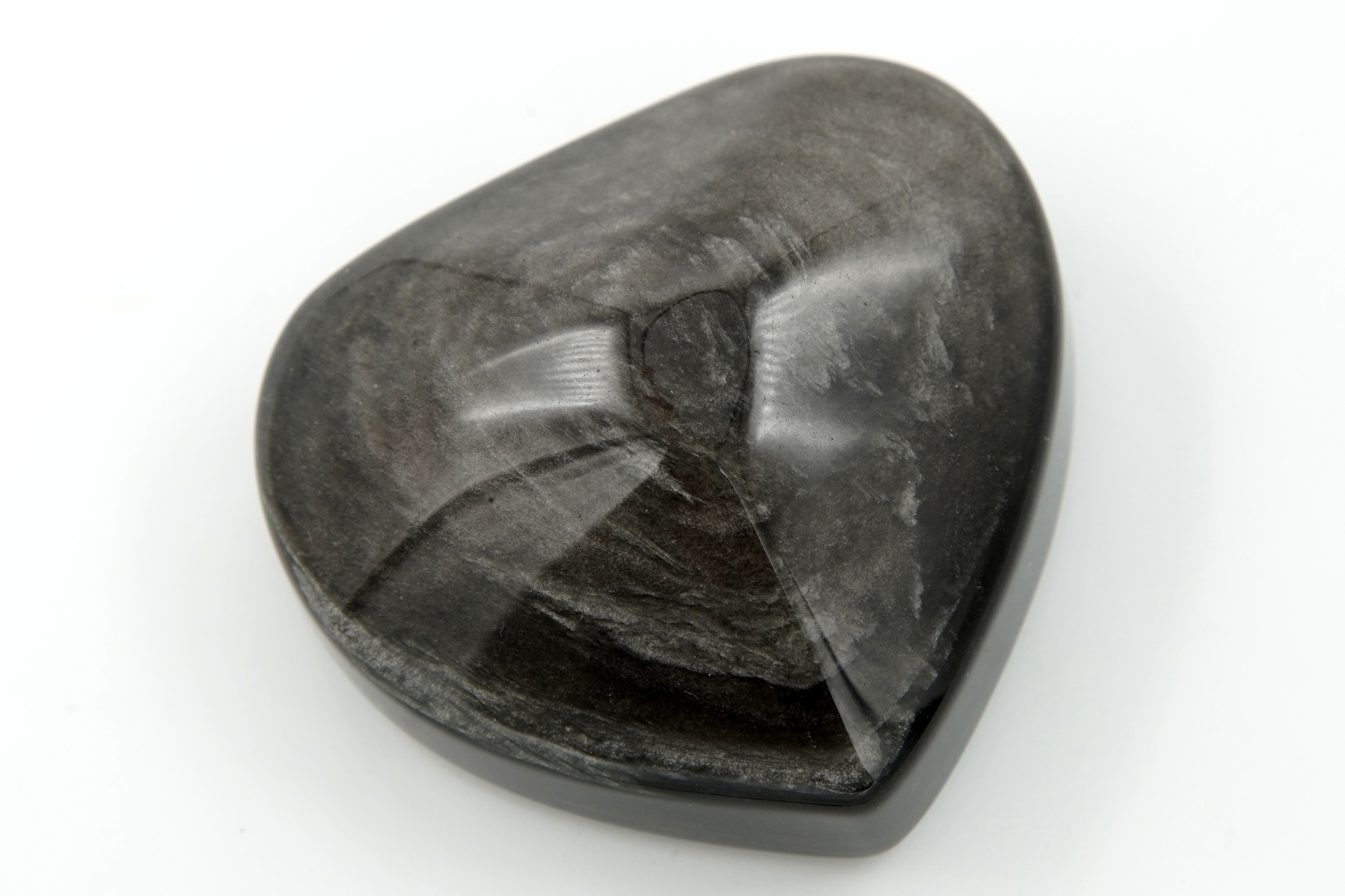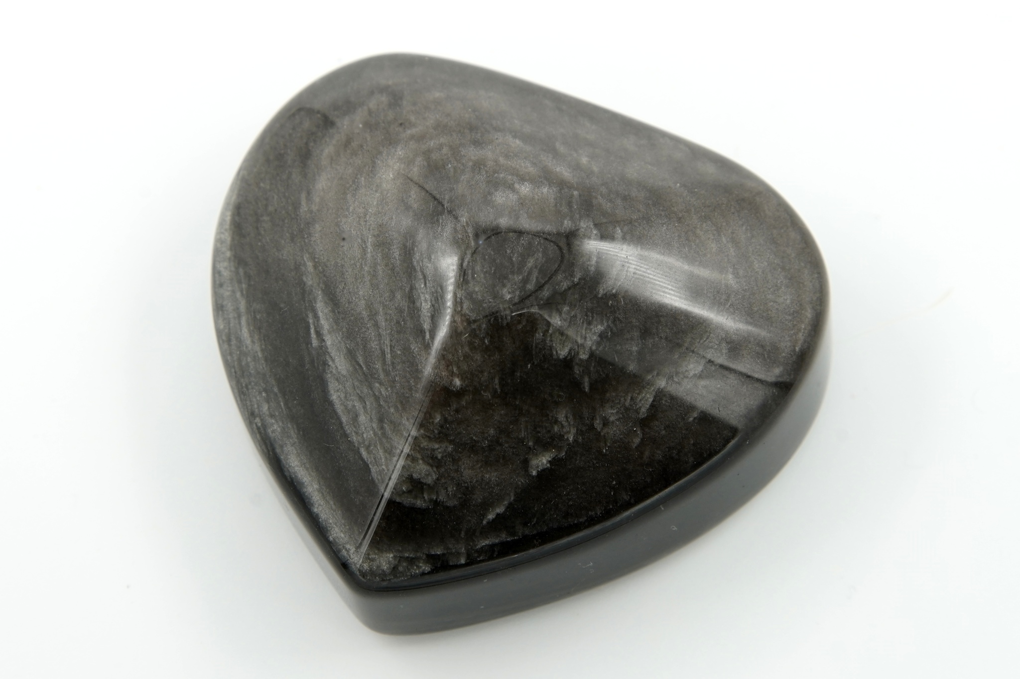 Obsidián stříbrný vybroušený do tvaru srdce.