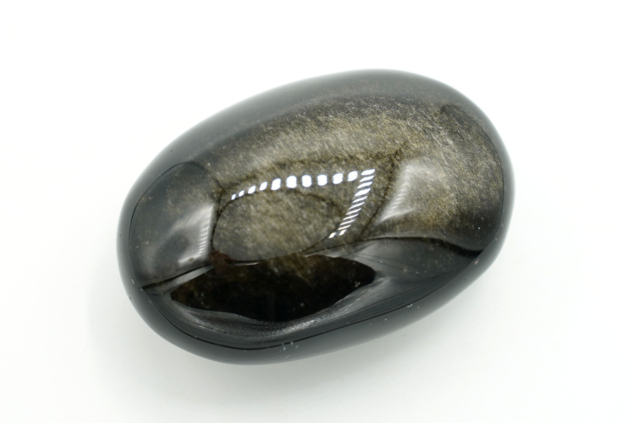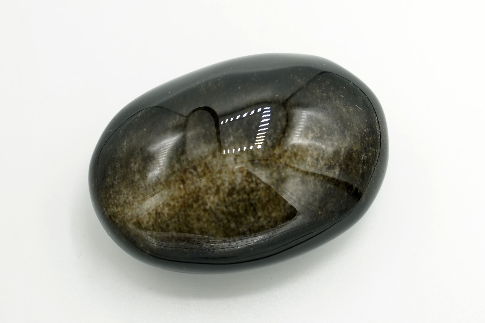 Obsidián zlatý mýdlo - hmatka, velikost 5,1 x 3,6, tloušťka 2,3 cm. Zlatý obsidián charakterizuje černá barva se sametovým zlatavým odleskem. Při objednávce Vám bude zaslán vyobrazený kus.