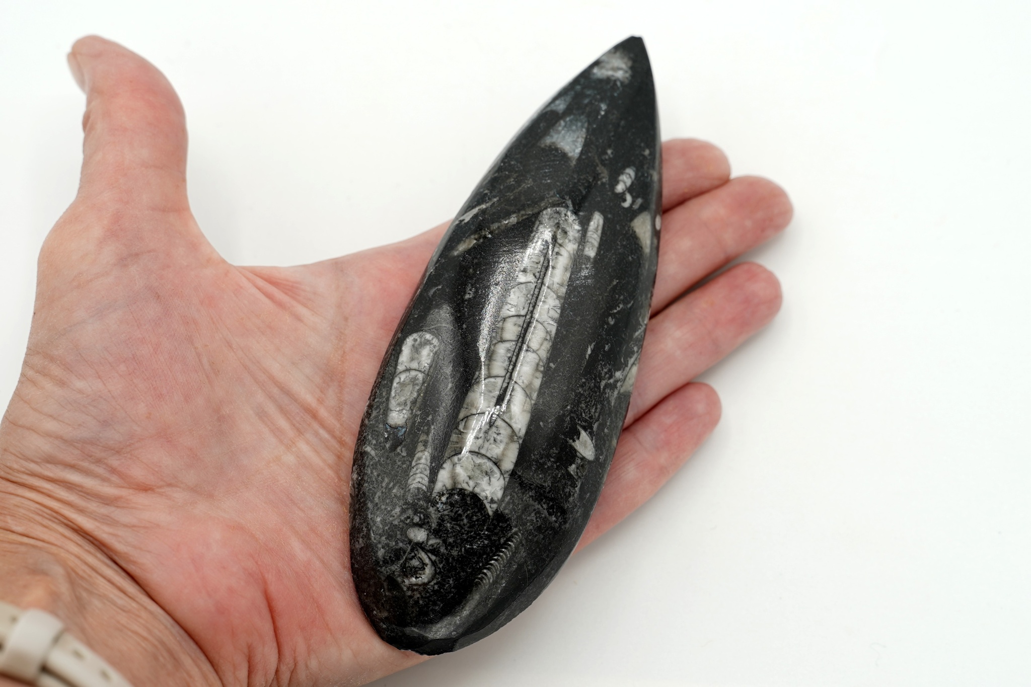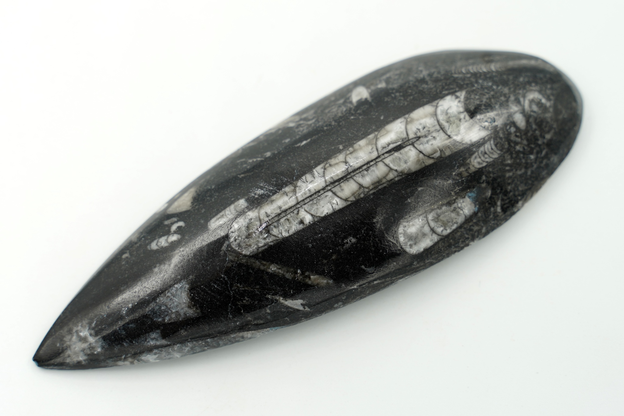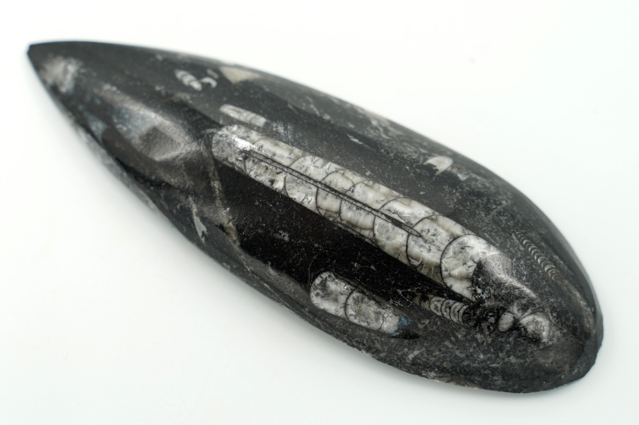 Orthoceras je vyhynulý hlavonožec, který žil před 350-400 miliony let v mělkých mořích na území dnešního Maroka. Zkamenělá schránka živočicha je uchována v černém vápenci.