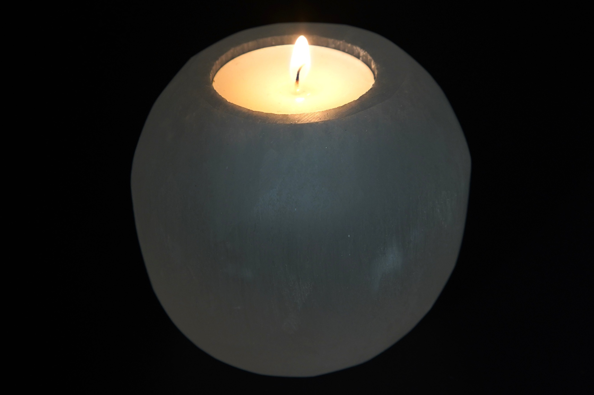 Svícen ručně vybroušený z bílého selenitu - na čajovou svíčku.