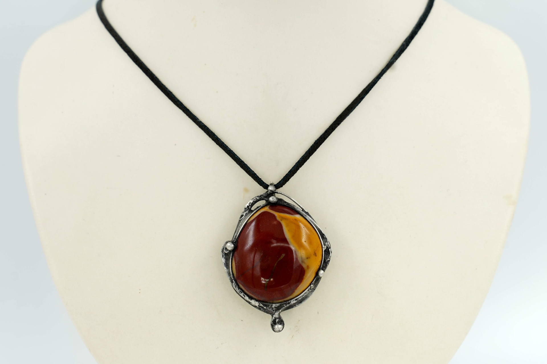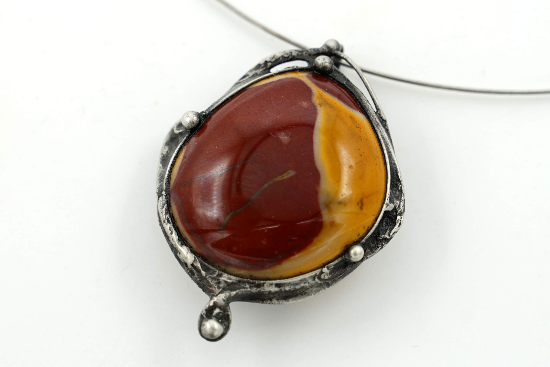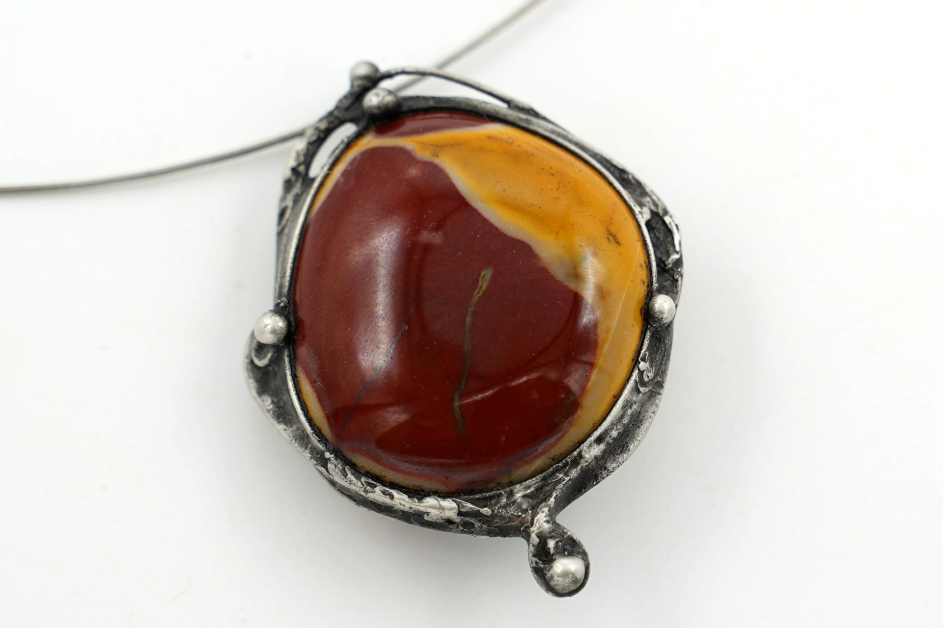 Náhrdelník s velmi pěkným jaspisem mokait, z bezolovnatého cínu, patinován, ošetřen proti oxidaci.