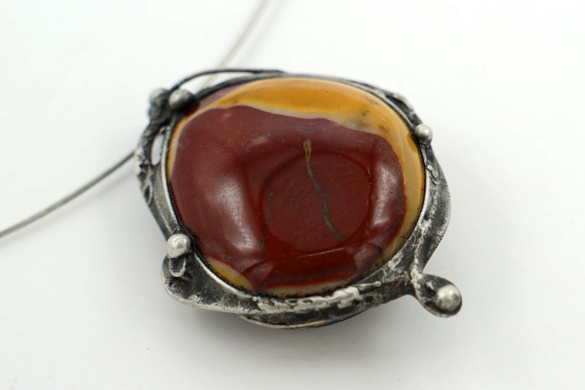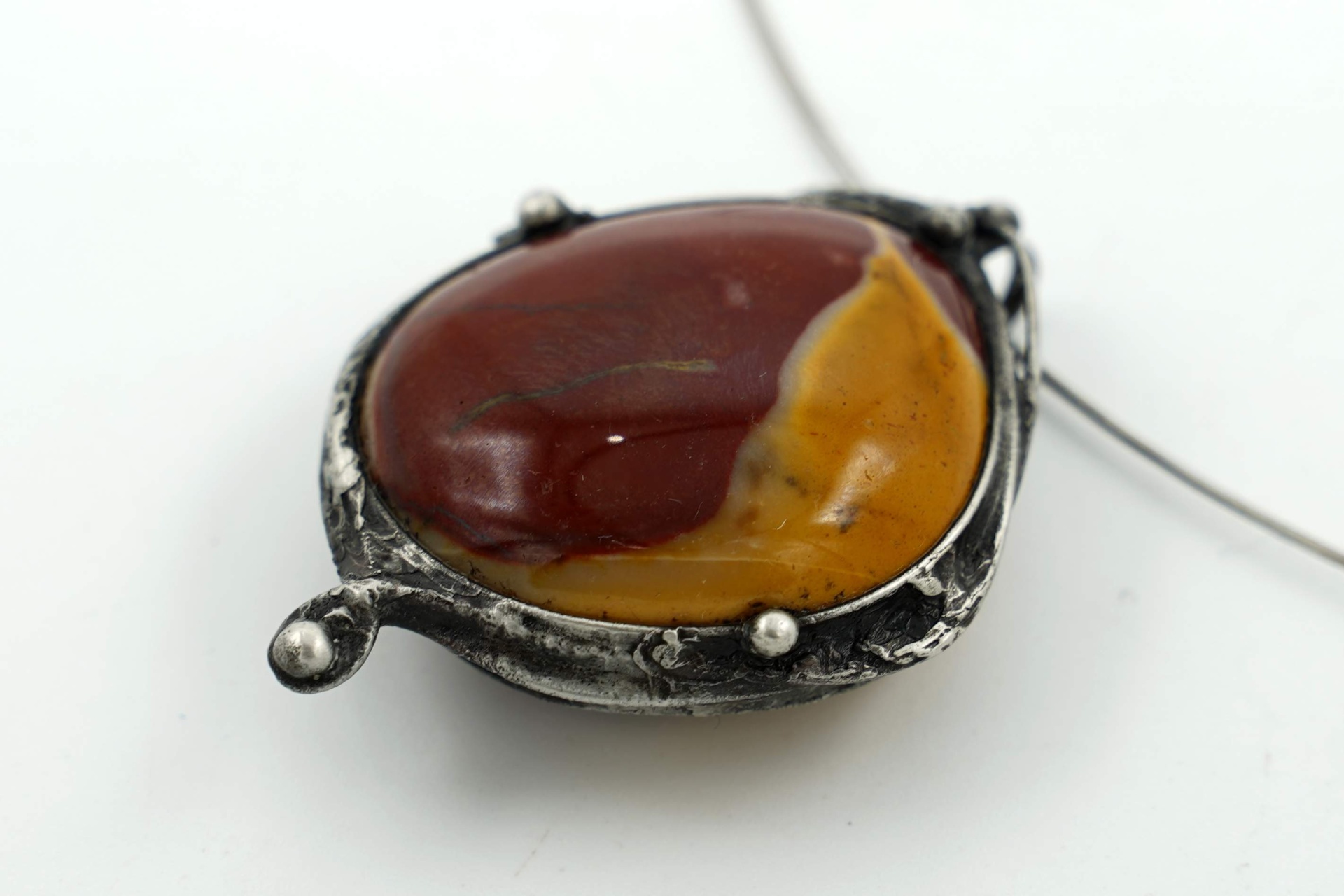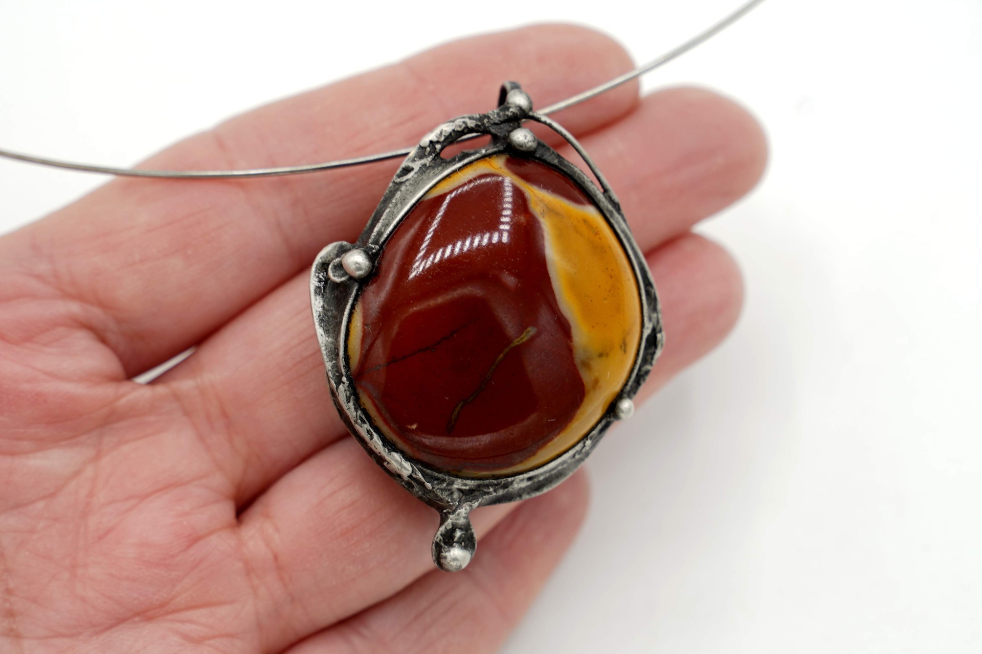 Náhrdelník s velmi pěkným jaspisem mokait, z bezolovnatého cínu, patinován, ošetřen proti oxidaci.