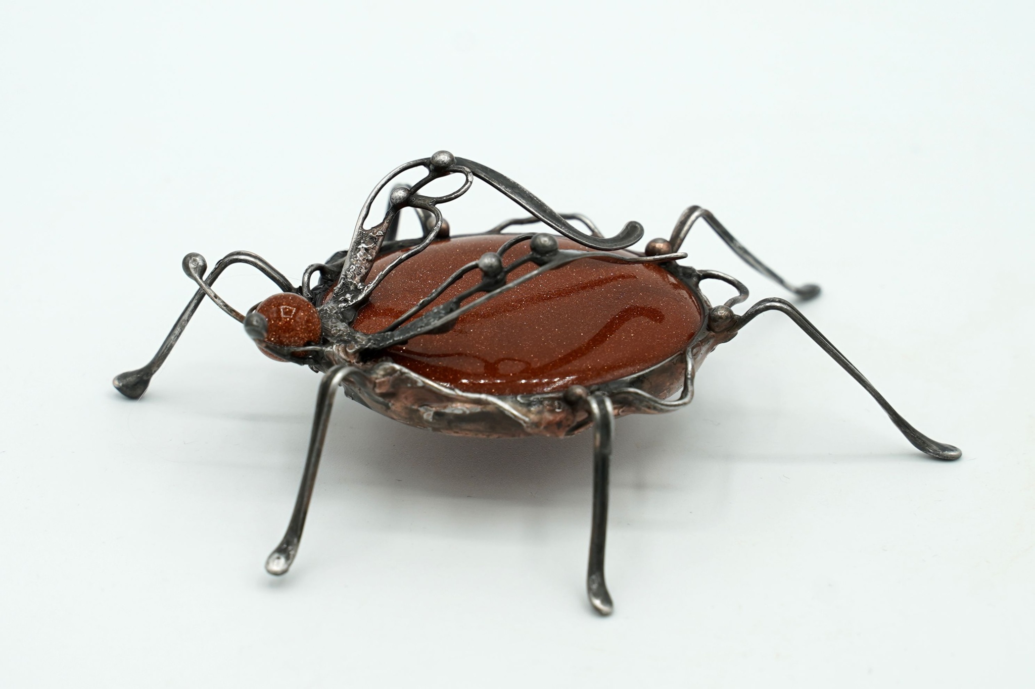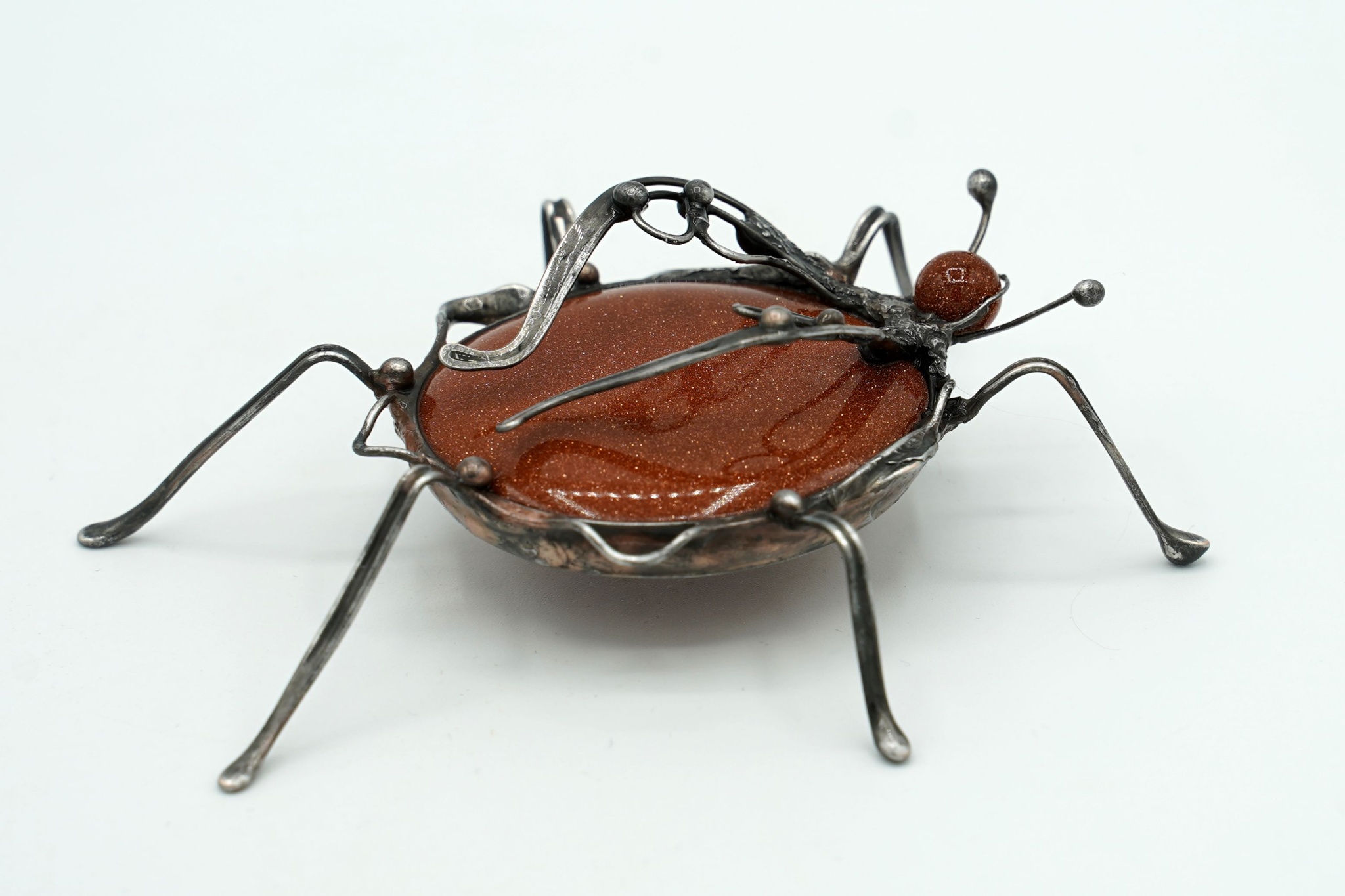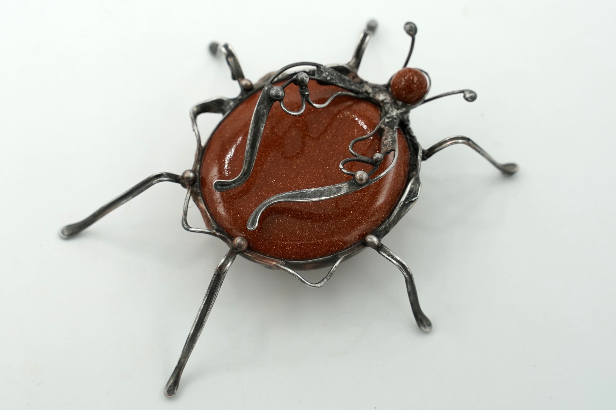 Smůlokaz - Brouček - originální dekorace z plochého valounku zlatého aventurínu (syntetický kámen), drátu a cínu, patinováno, leštěno, ošetřeno antioxidantem. Doplněno aventurínovým korálkem.