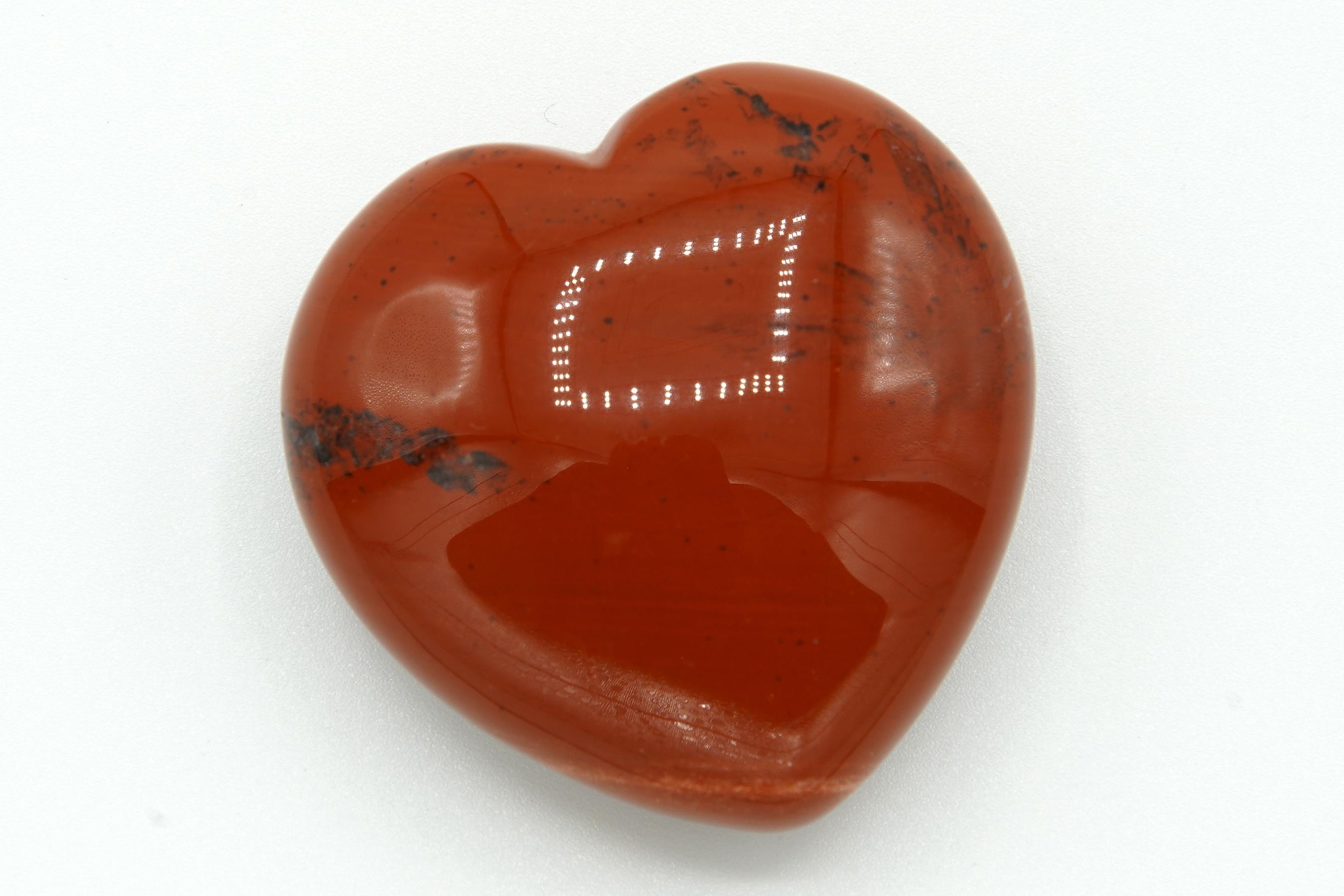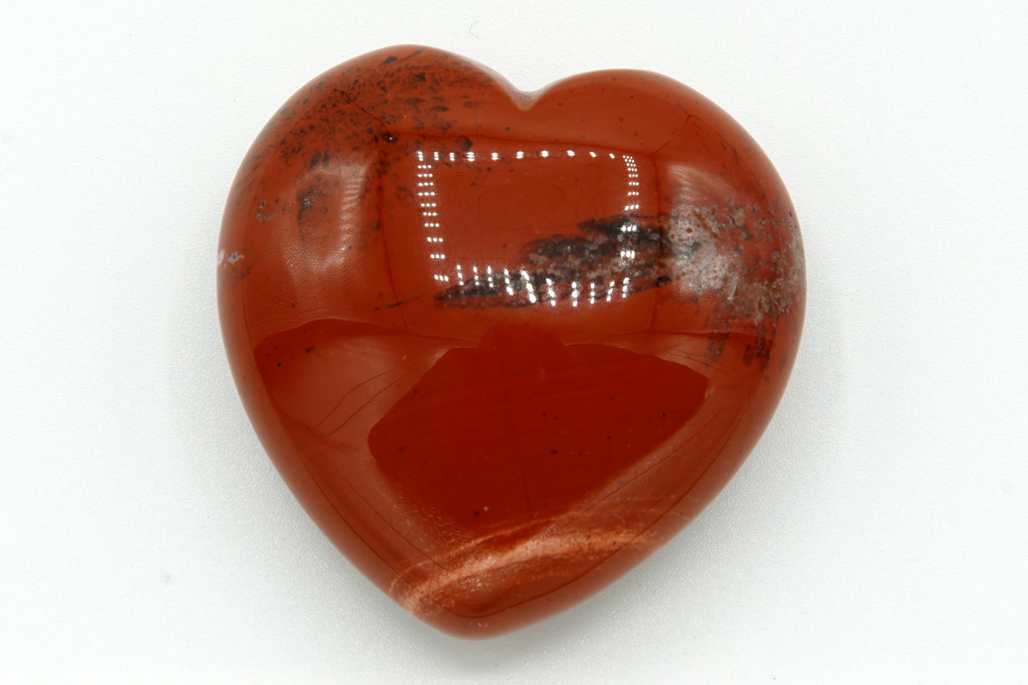 Ručně broušené a leštěné z srdce z červeného jaspisu o rozměru cca 4 x 4 cm, výška cca 2 cm. Lze použít jako hmatku, amulet nebo originální osobní dárek.