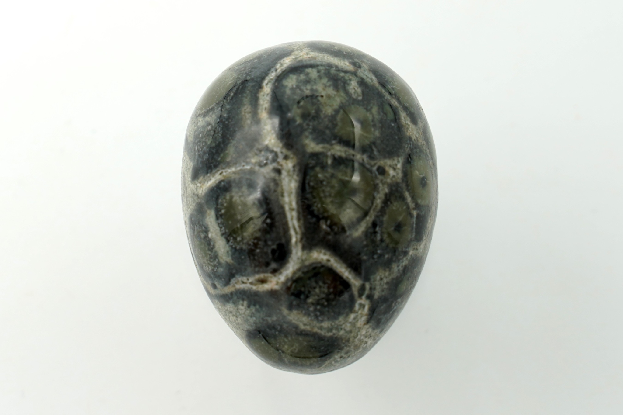 Vajíčko broušené a leštěné, tak aby vynikla krása kamene. Jaspis kambaba, také známý také jako krokodýlí jaspis, se vyznačuje krásnou zelenočernou kresbou.